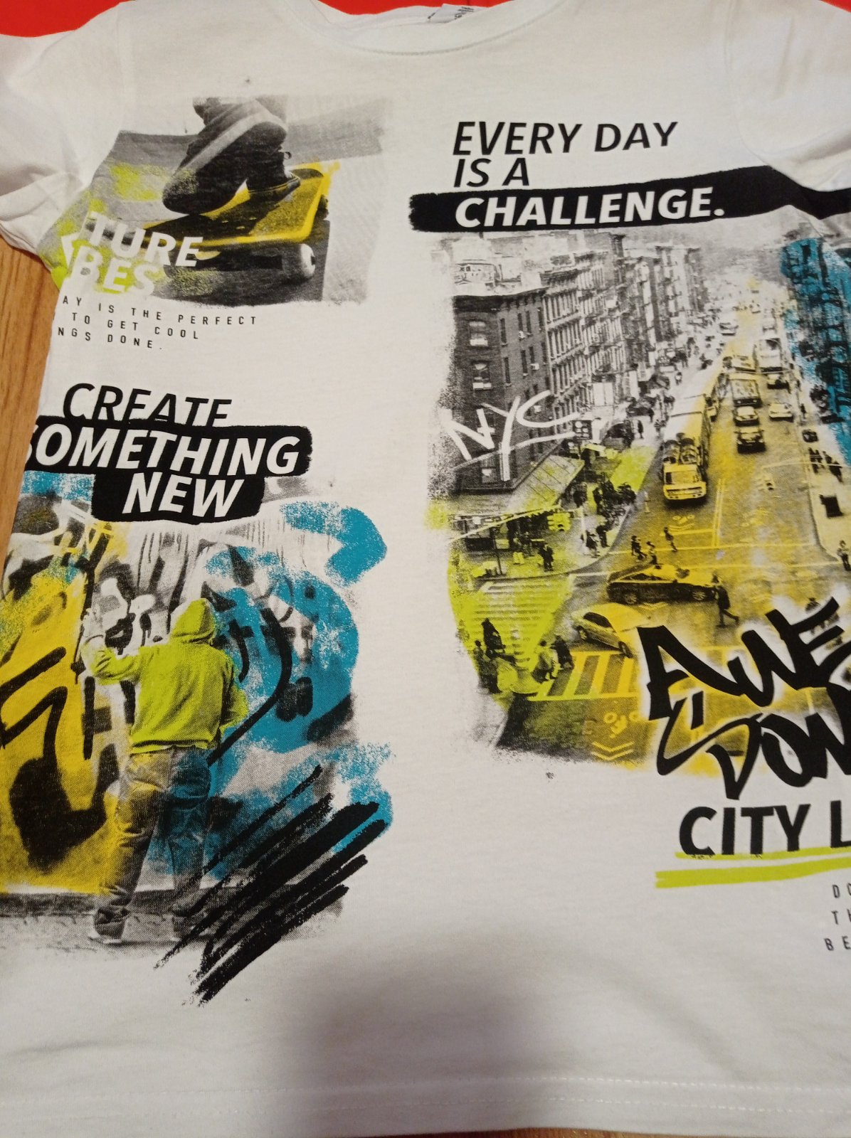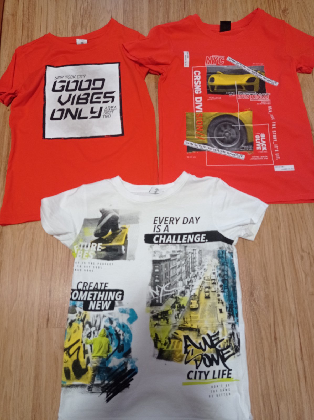 Tricka velmi dobry noseny stav, pisana velkost 146/152 ale su to skor 146 a preto nam uz boli ltt.