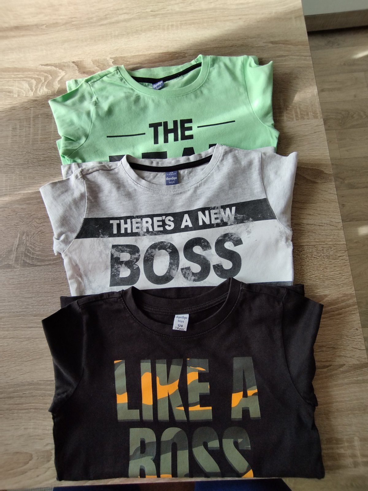 Tričká celková dĺžka 49cm, šírka pod pazuchami 2x35cm, rúkav od krku 50cm, spodný rukáv 35cm. Na sivom na rukáve fliačiky, viď foto. Čierne a zelené top stav. Cena spolu.