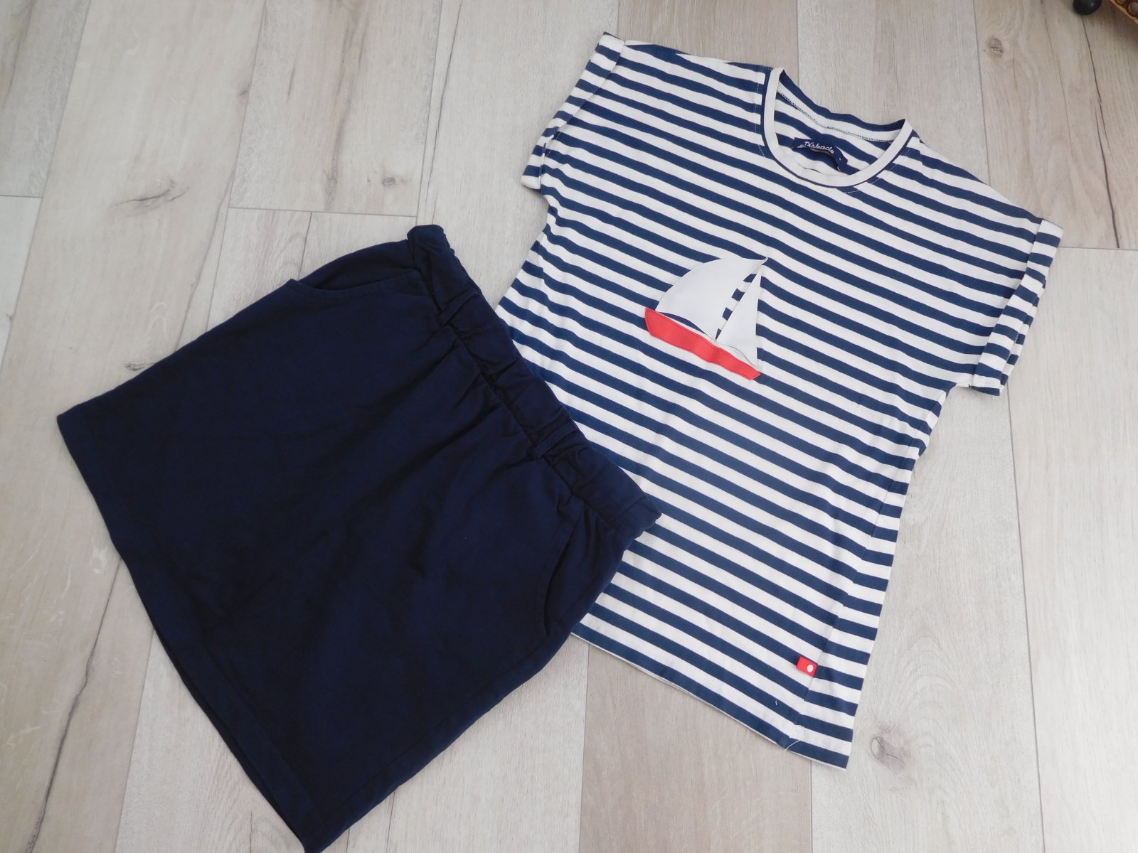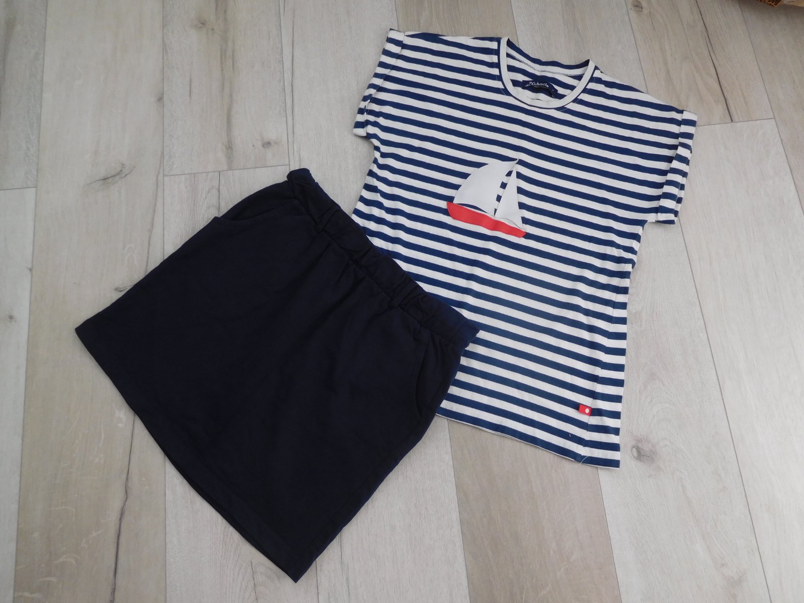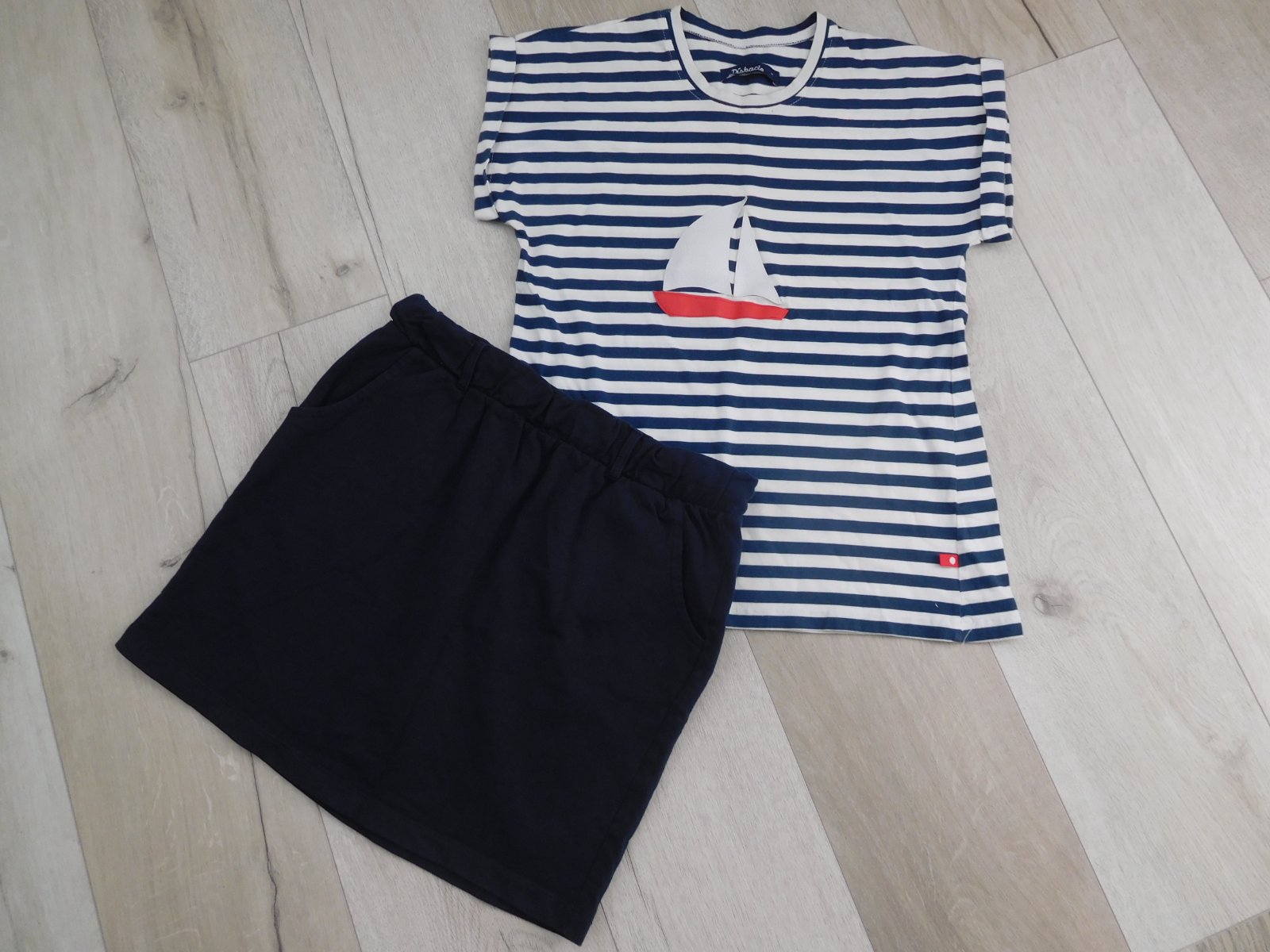 Ponúkam na predaj bavlnené viď foto, tričko pruhované+sukničku všetko bavlnené,pružné, makké, voňavé-vo veľkosti-38,