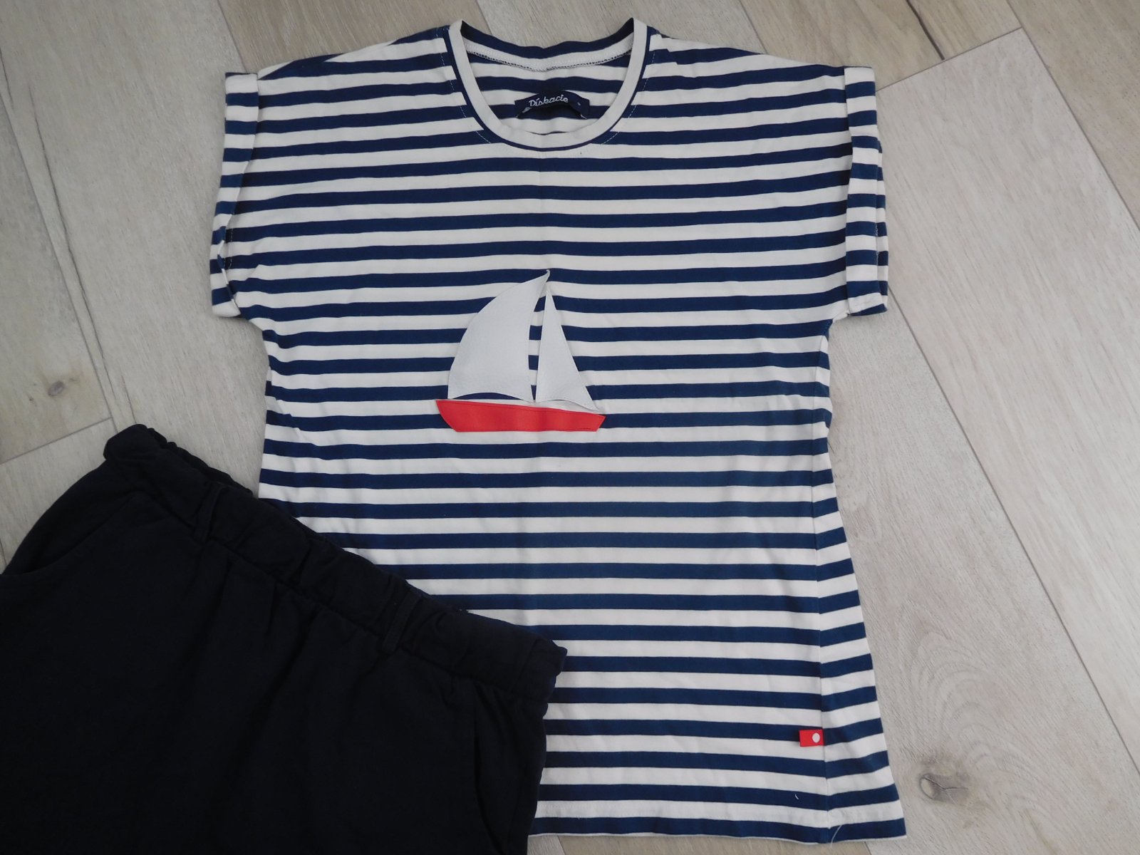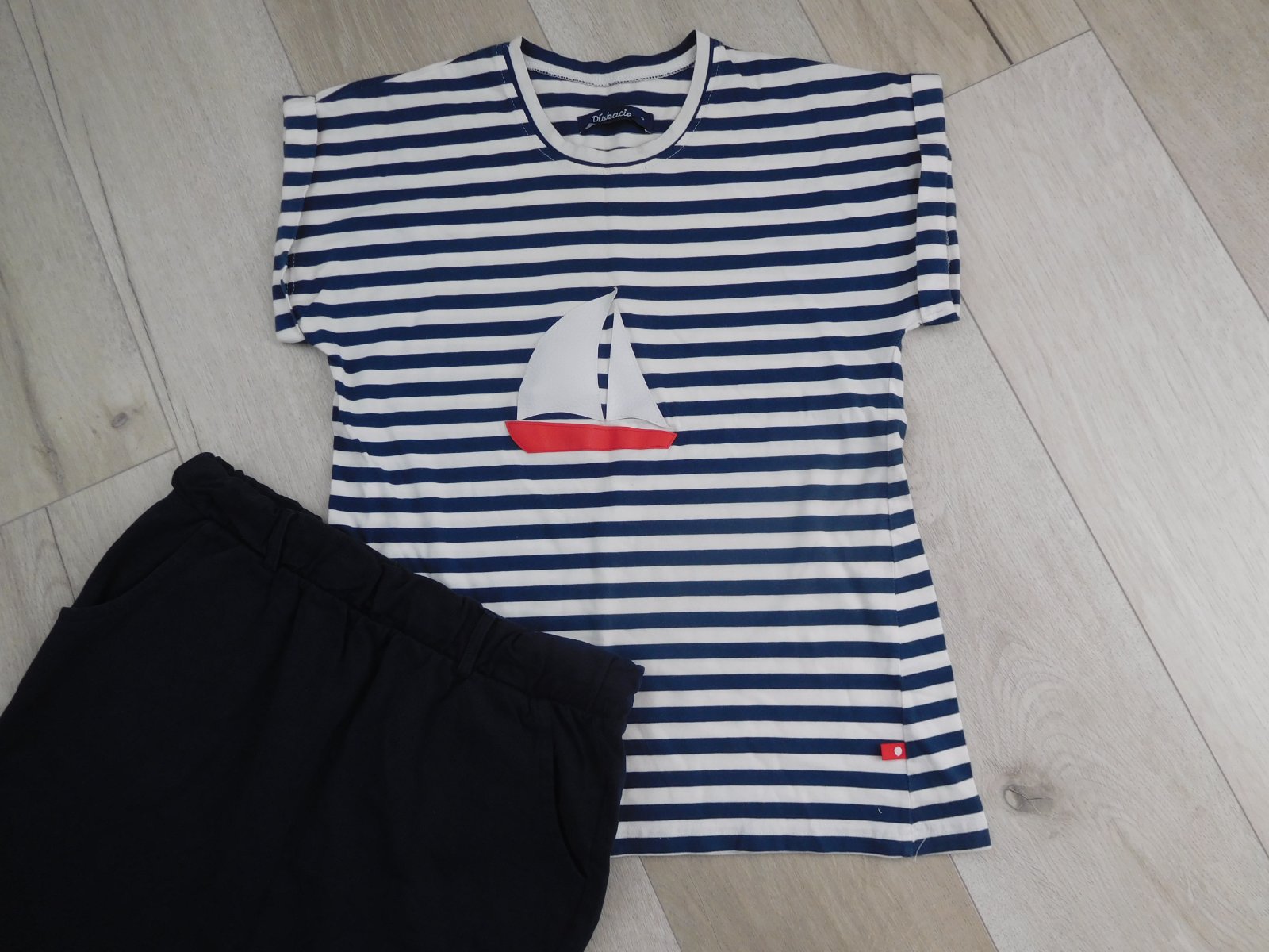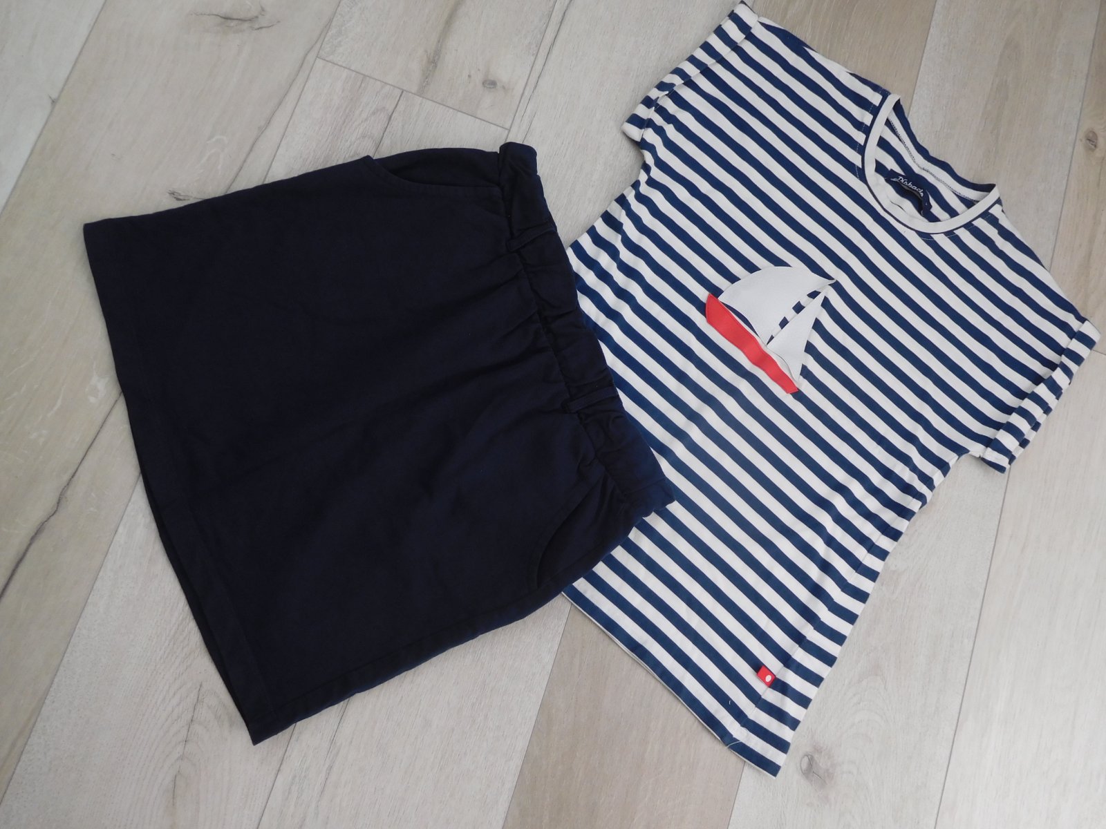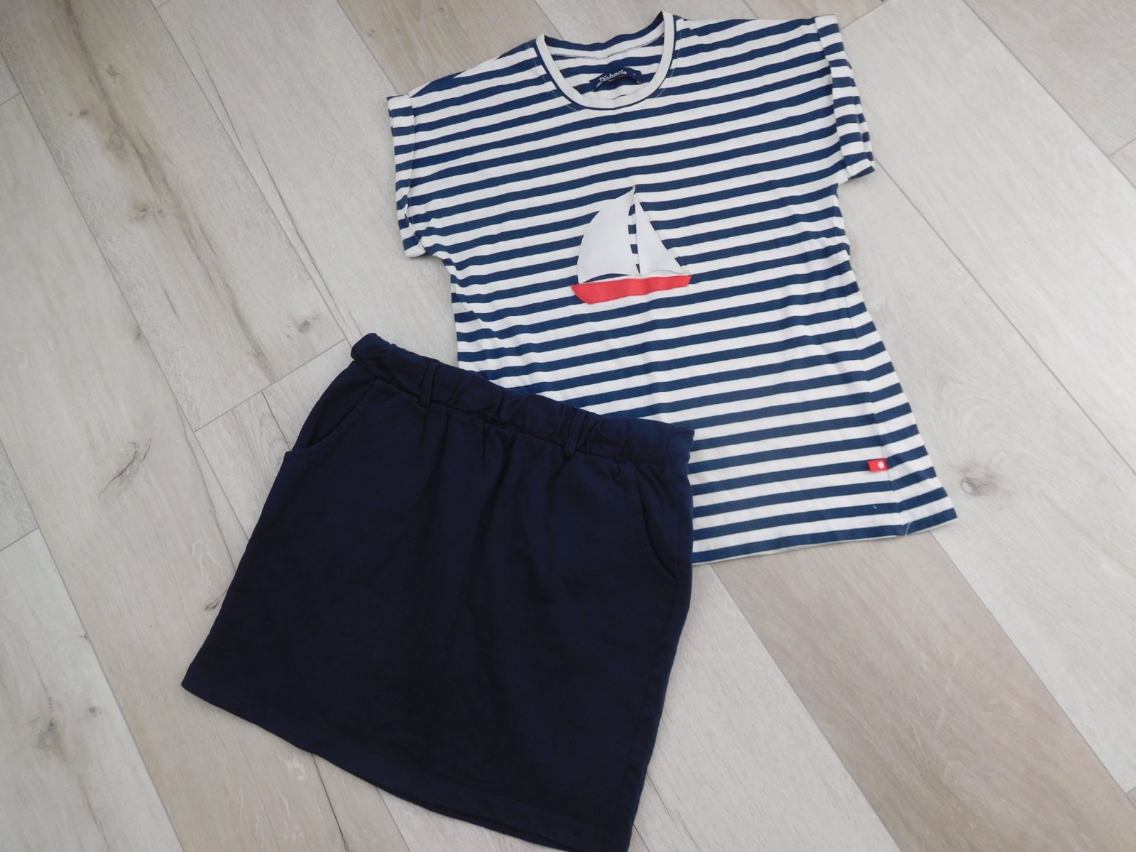 Ponúkam na predaj bavlnené viď foto, tričko pruhované+sukničku všetko bavlnené,pružné, makké, voňavé-vo veľkosti-38,
