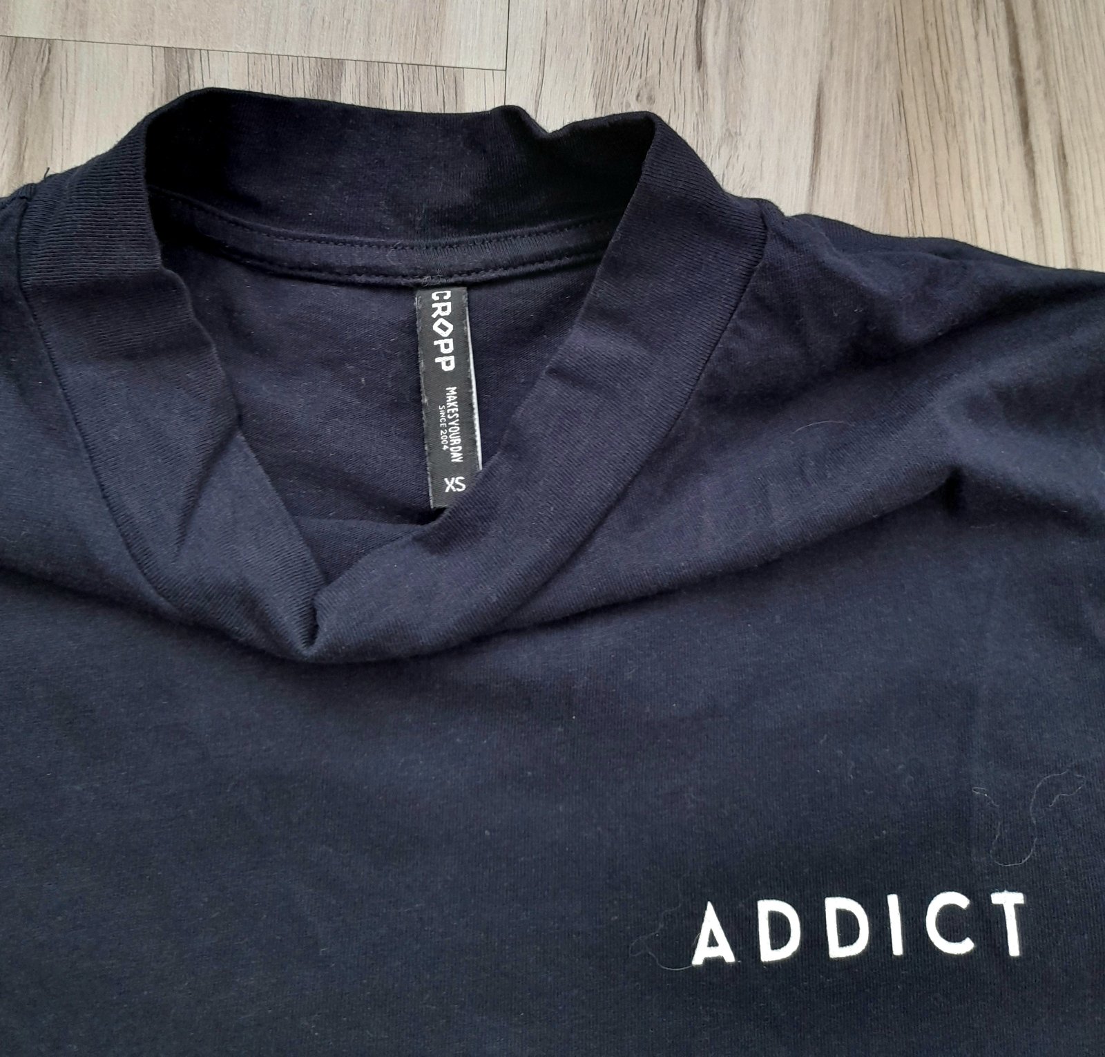 Dve tmavé trička s nápismi, jedno je tmavomodré a druhé čierne. Kúpené sú asi v Pepco. Veľkosť písaná S a M, ale sedia skôr na XS.. Celková dĺžka je 55 cm a šírka tmavomodré 41 a čierne 44 cm. Tri...