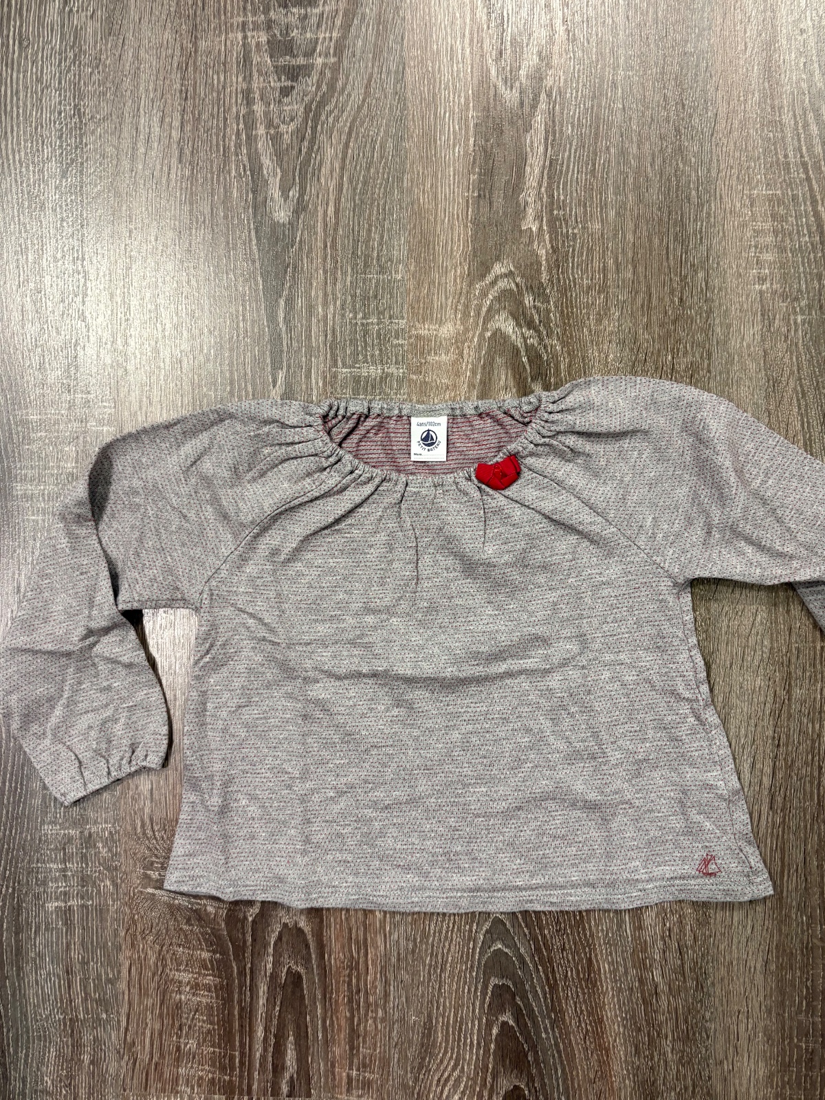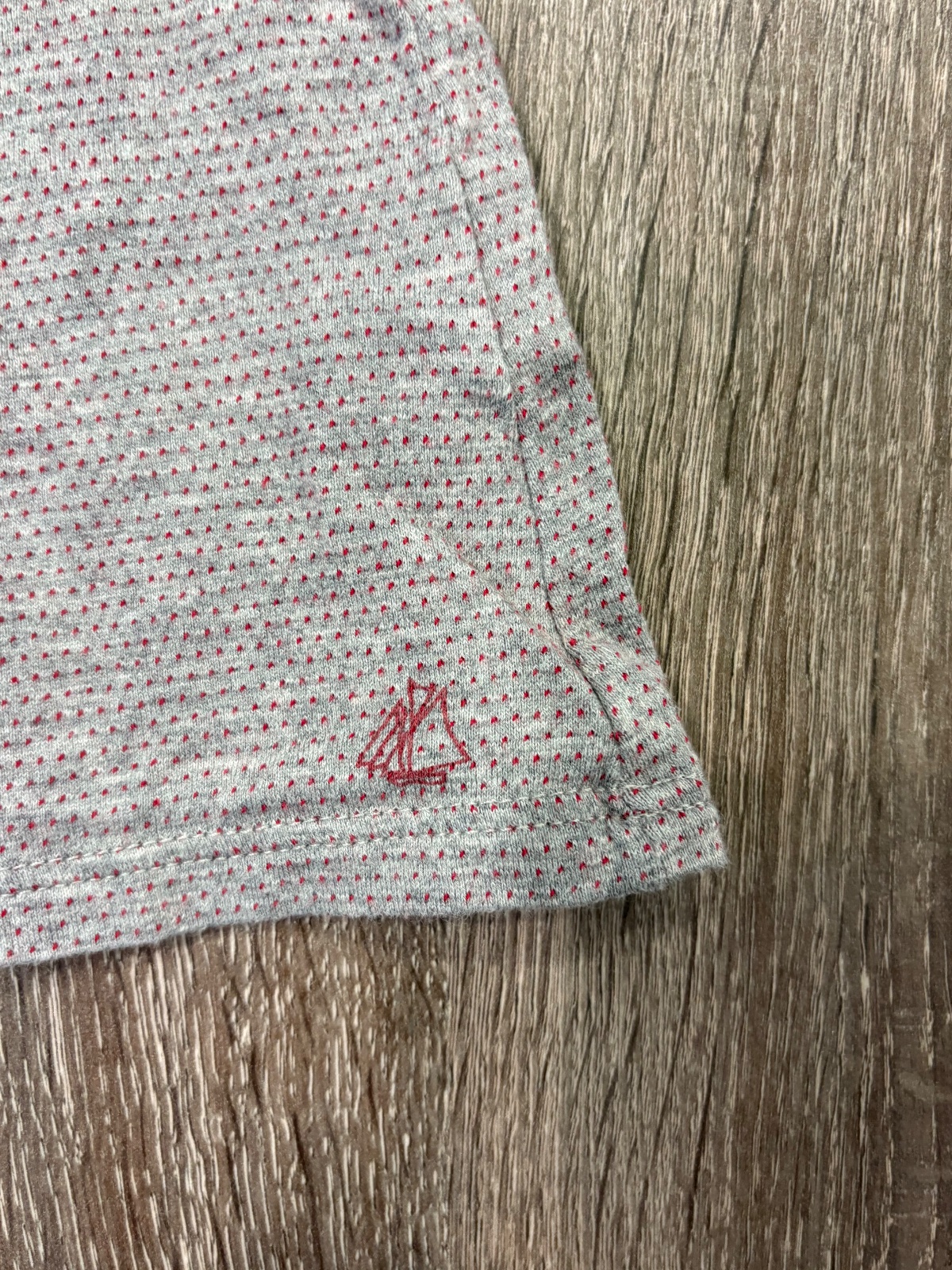 6.Petit Bateau dievcenske tričko s dlhym rukavom, s masličkou a s bordovymi bodksmi.Velkost 4 roky,dlzka je 35cm,dlzka rukava od krku je 39cm a sirka v podpazusi je od 33x2cm do 39x2cm