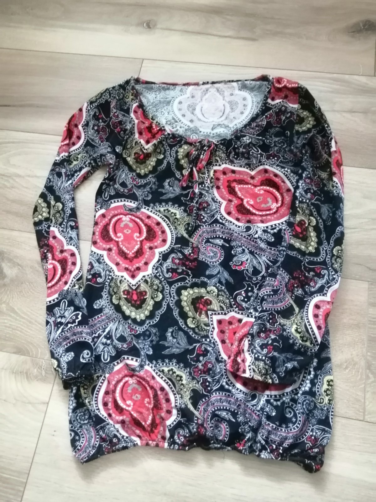 Predám nové tričko (športovo elegantné) s visačkou. Vpredu košeľový materiál, vzadu je to príjemná jemná bavlna, dole na šnúrku, okrúhly výstrih, aplikácia v strede (štvorec flitrovaný) dookola pís...