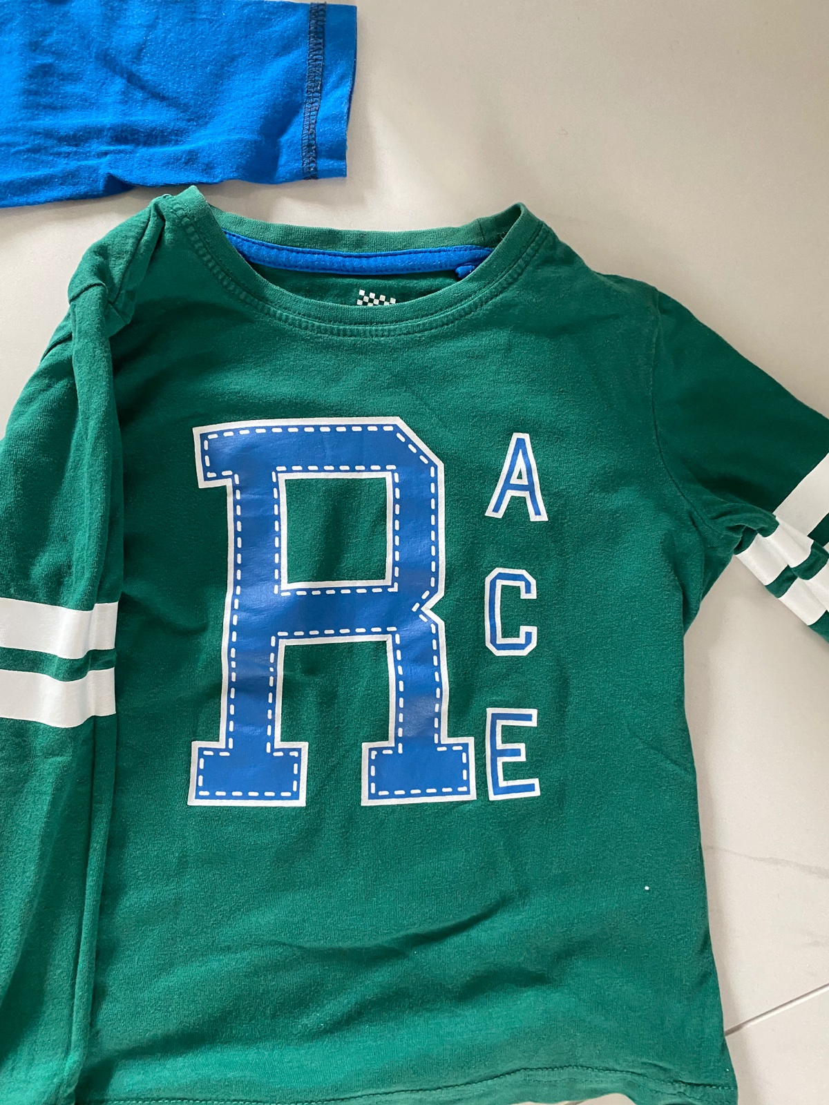 Tričká lupilu , veľkosť 98-104 . Nosené mojim synčekom.Na pružkovanom žmolok z prania. Tmavé je bez poškodenia, tá aplikácia taká bola.