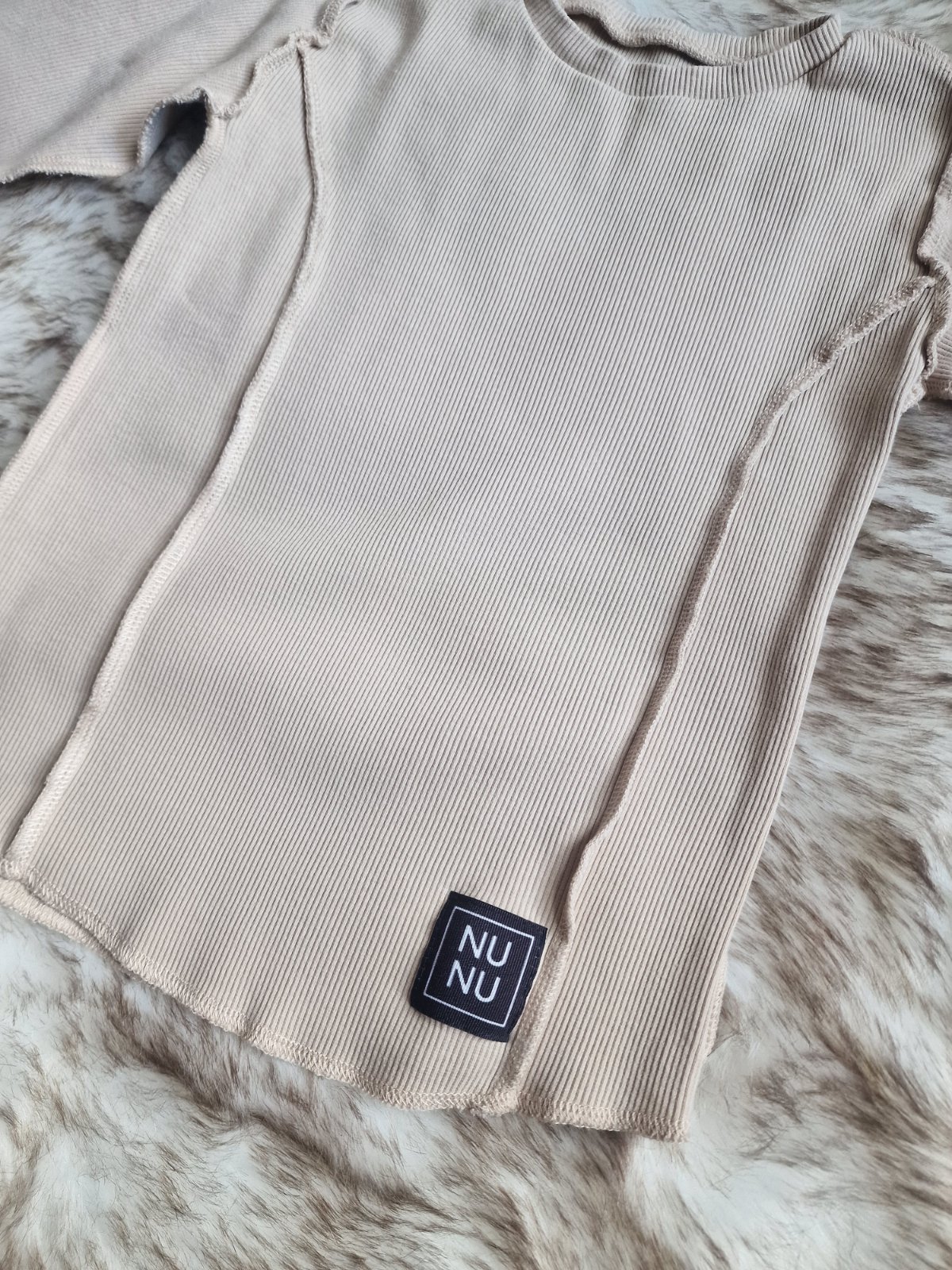 Bezovy top s krajkovymi rukavmi. Jemny uplet. Bez chybicky ako novy.