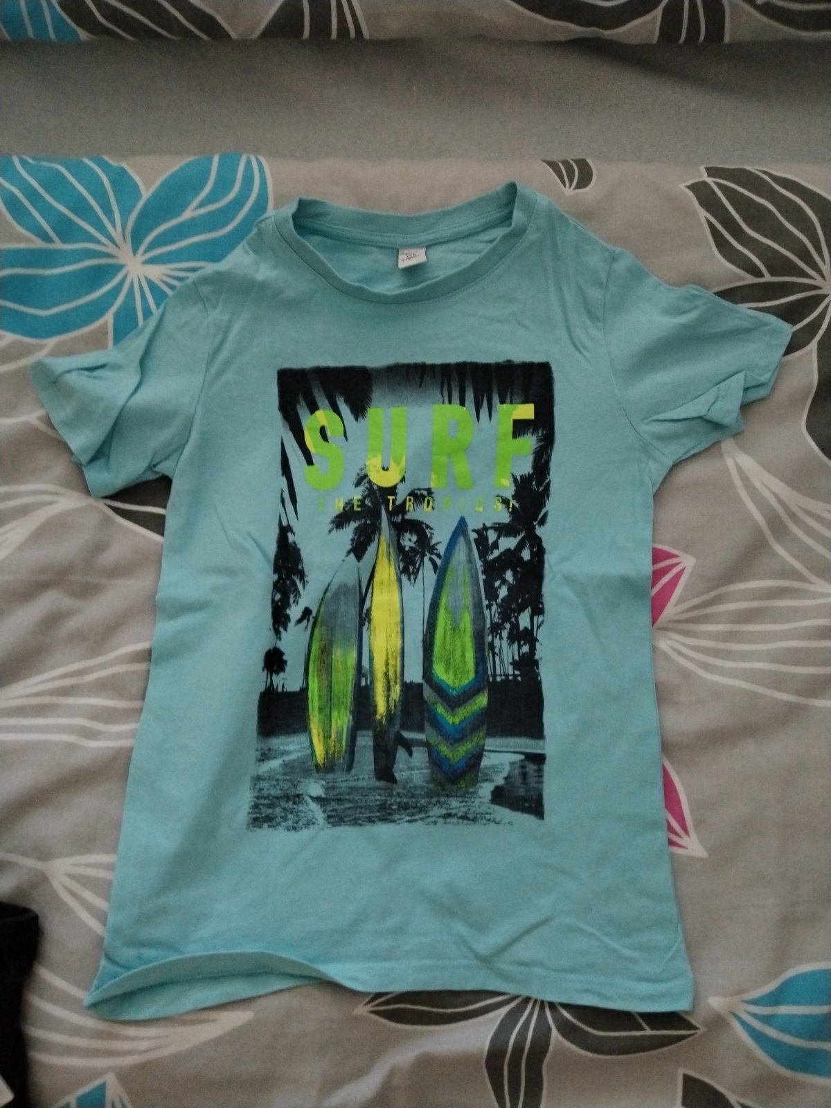 Predam pekne tyrkysove tricko na 7-8 rokov, bez poskodeni
