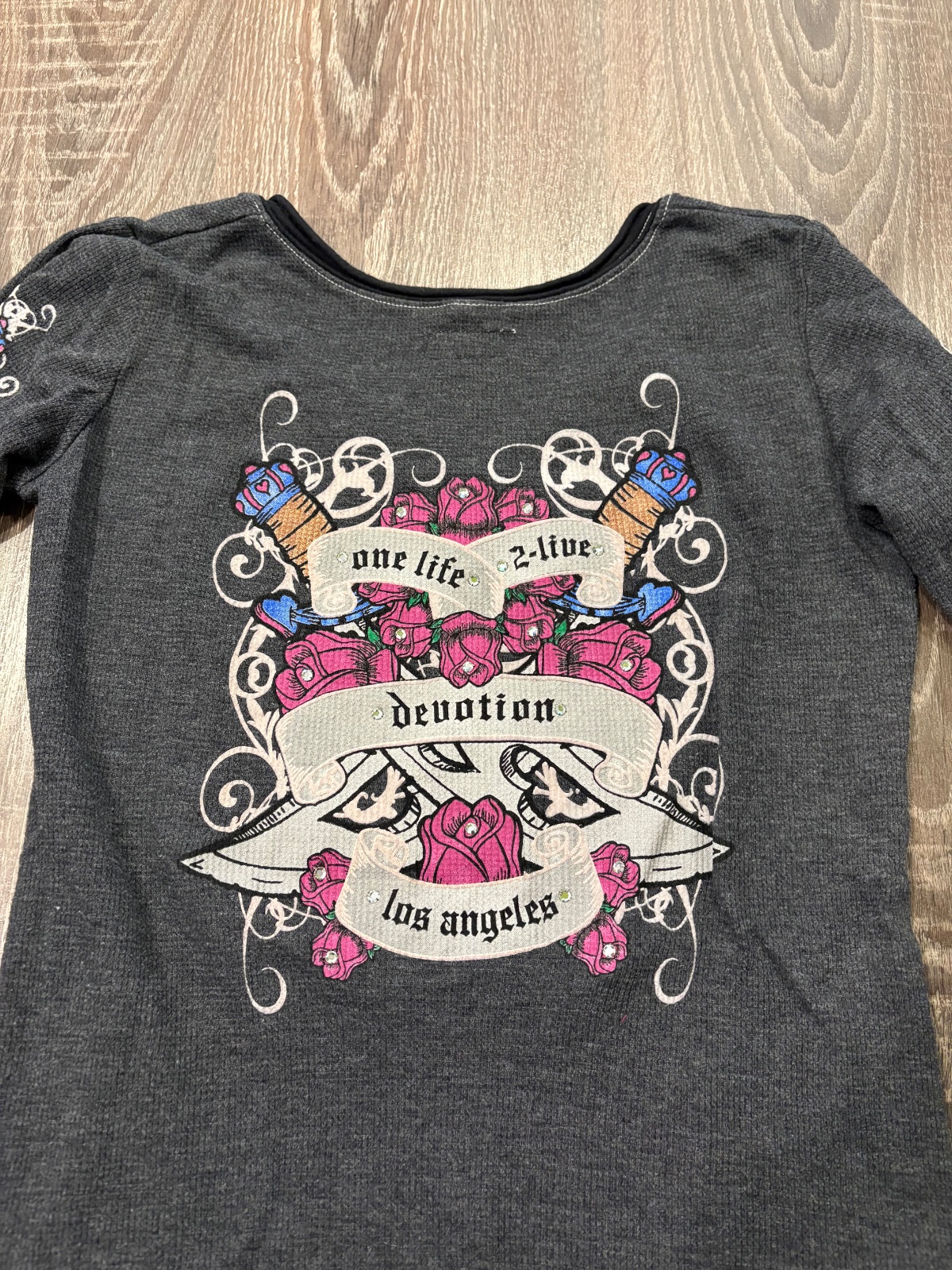 02.Los Angeles štýlové dámske tričko vo velkosti S, elastické , super dizajnersky premakané, na chrbte krasny vzor a kryštáliky