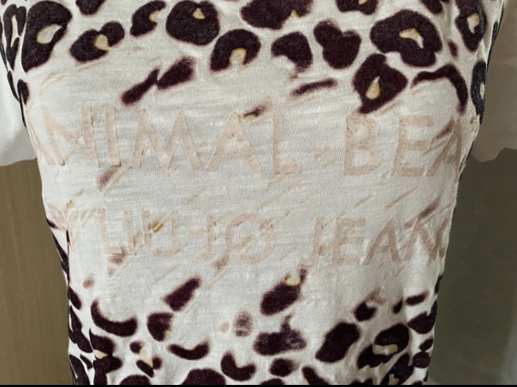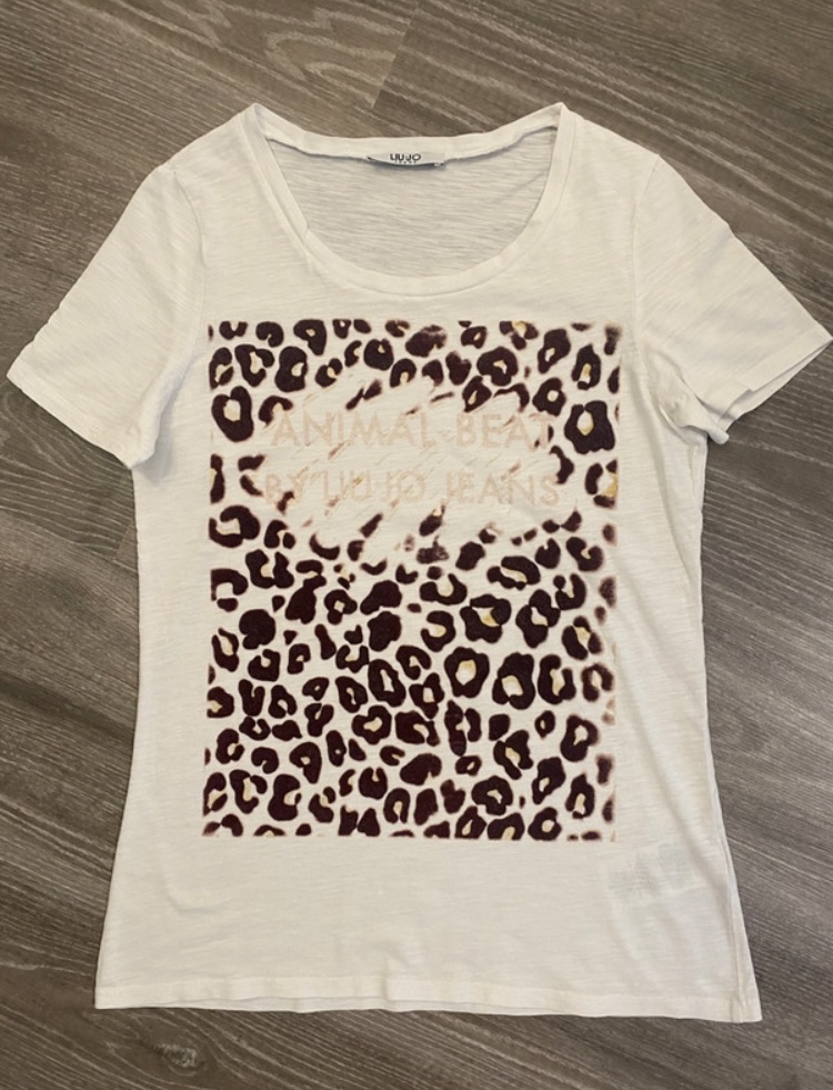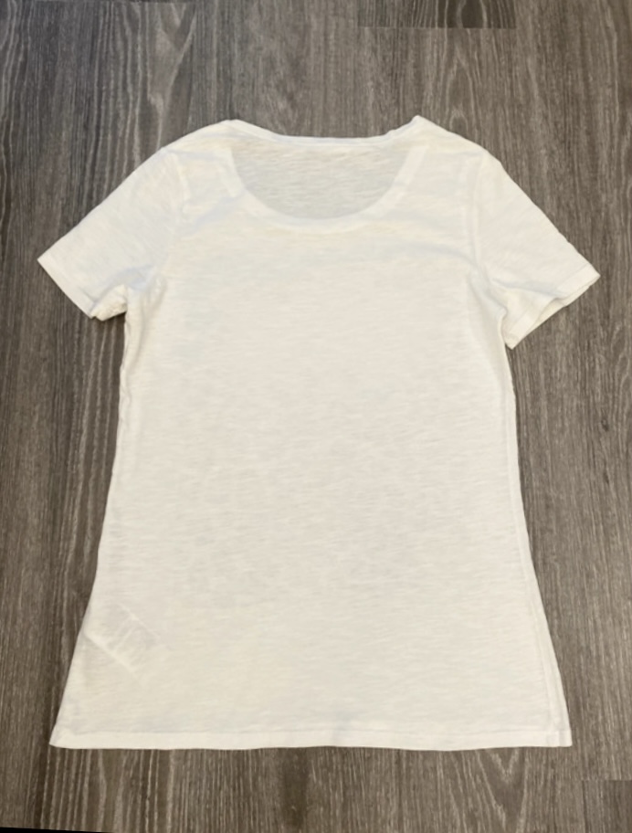Tričko z bavlny, nosené, bez poškodení; uvedená M, skôr S Miery: pod pazuchami 43cm x 2; dĺžka 62cm