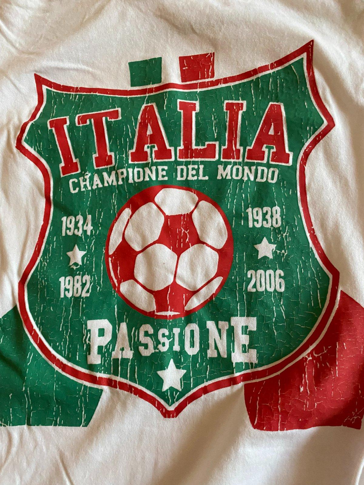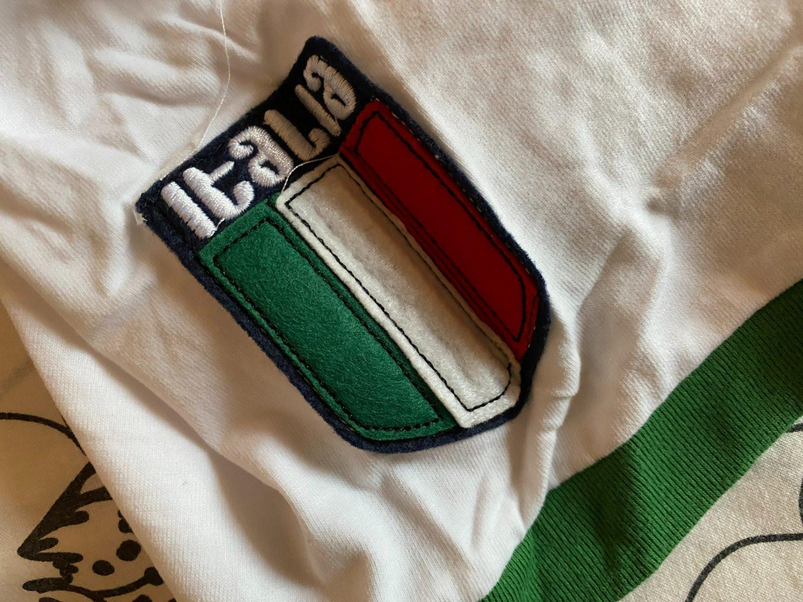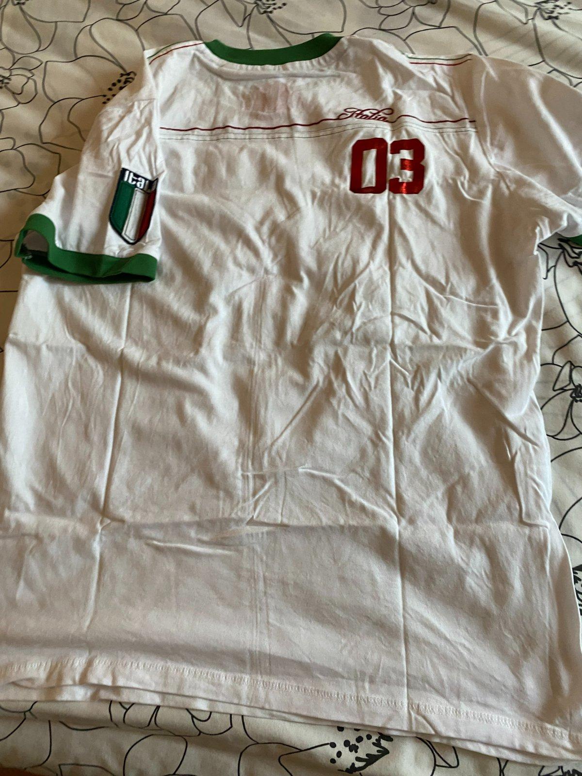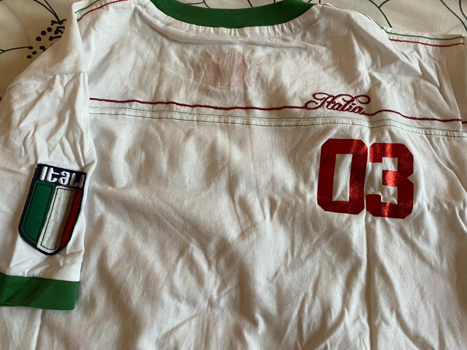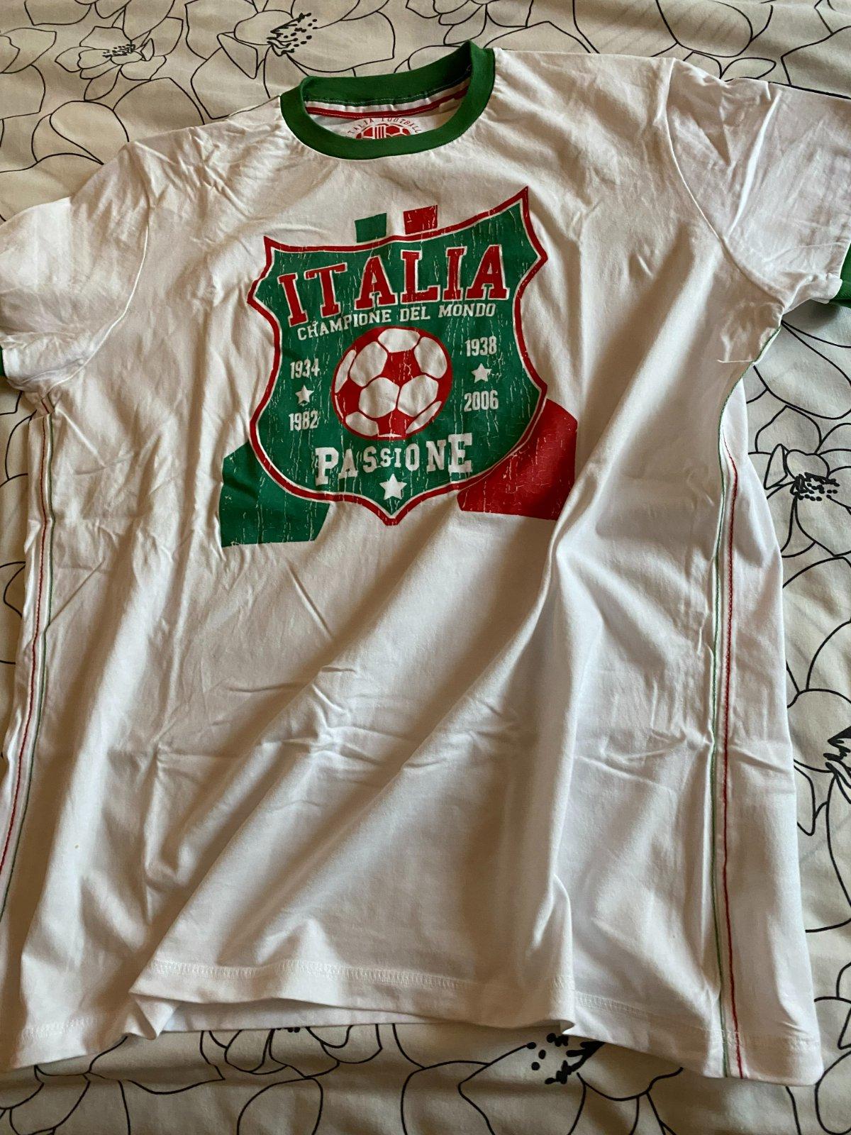 Tričko s aplikáciou - Taliansko v. L, materiál 100% bavlna, kvalitne prepracované, kopa pekných detailov, raz oblečené a opraté, ako nové. Miery: dĺžka od krku dolu: 68cm, šírka: 53cmx2.