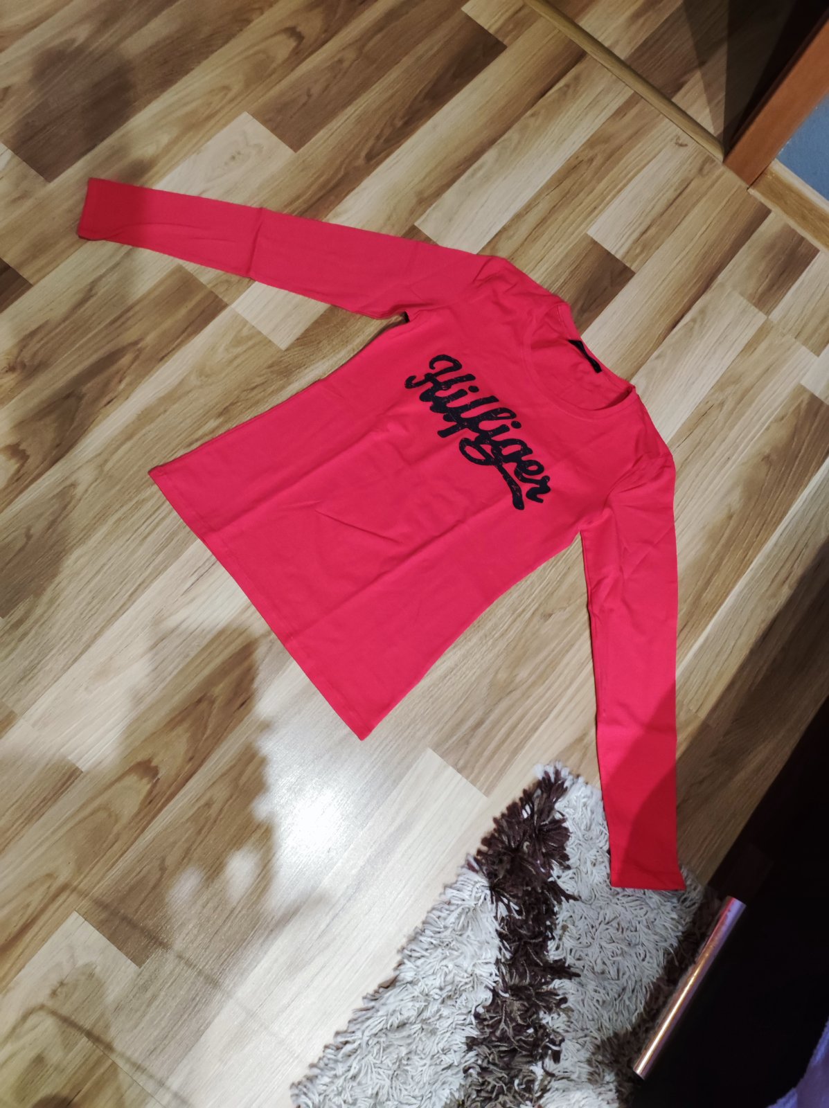 1x oblečený...akurát keď bol natelník poskladaný tak sa nápis trošku otlačil zo zadnej strany...nevidno to veľmi len upozorňujem