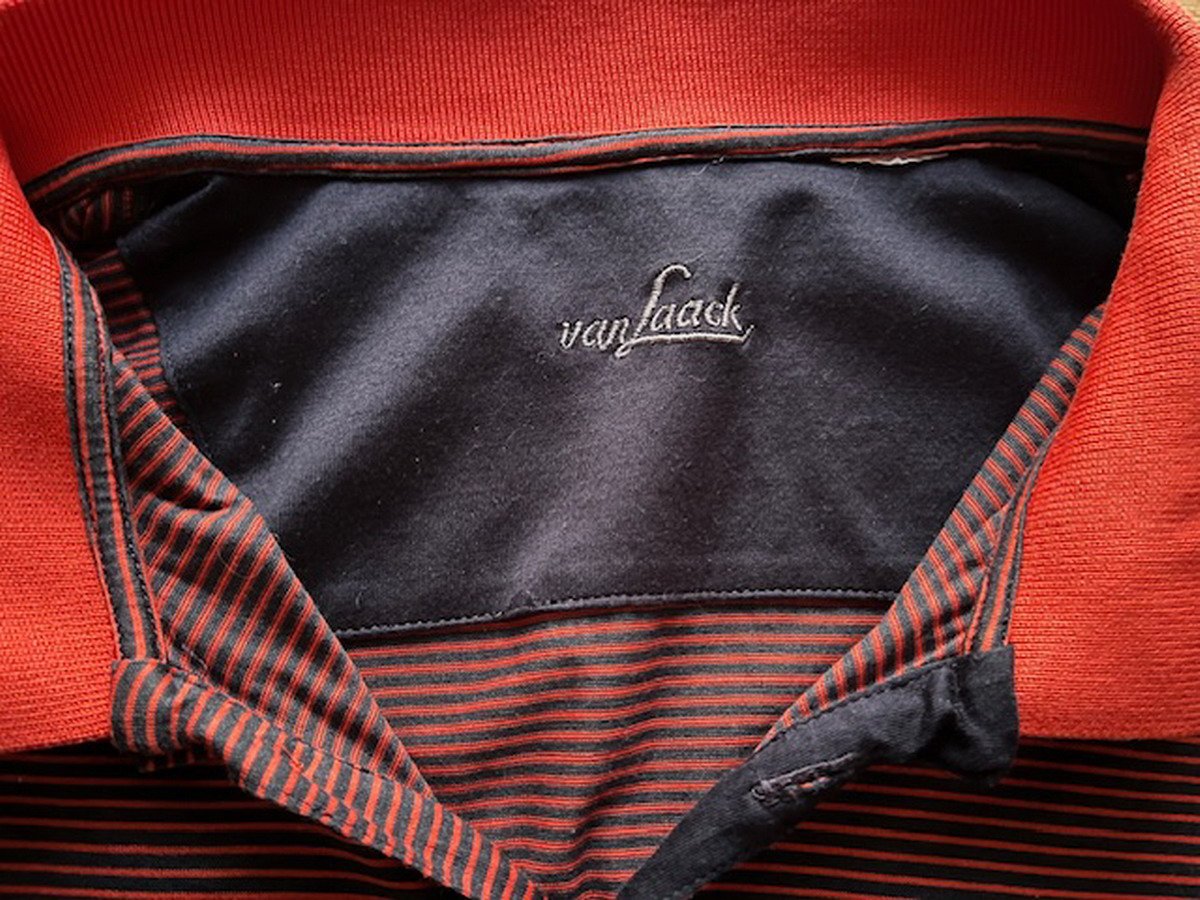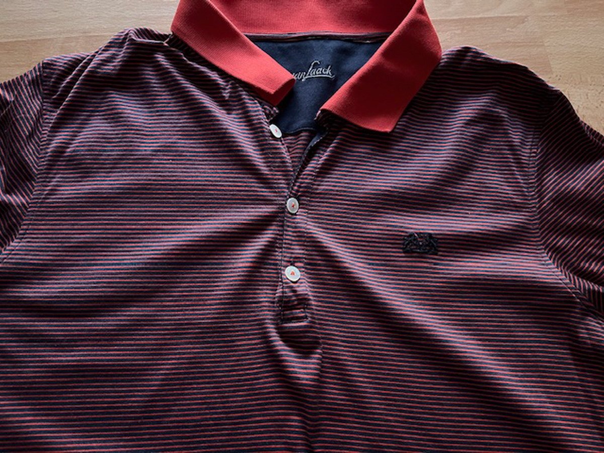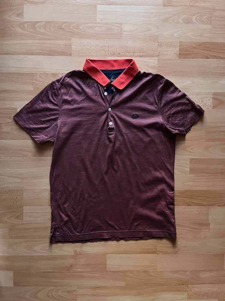 Ľahké tenké tričko červenej farby s modrými pásikmi značky Van Laack, vo veľkosti L, materiál: 100% bavlna