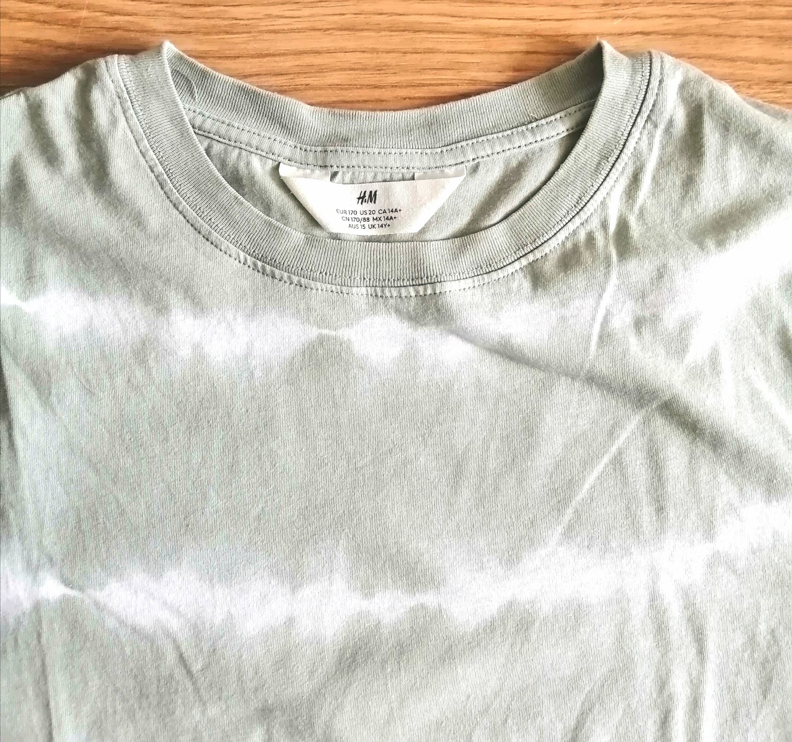 Kvalitné bavlnené chlapčenské tričko s krátkym rukávom, zeleno sivý podklad s batikovaným vzorom.