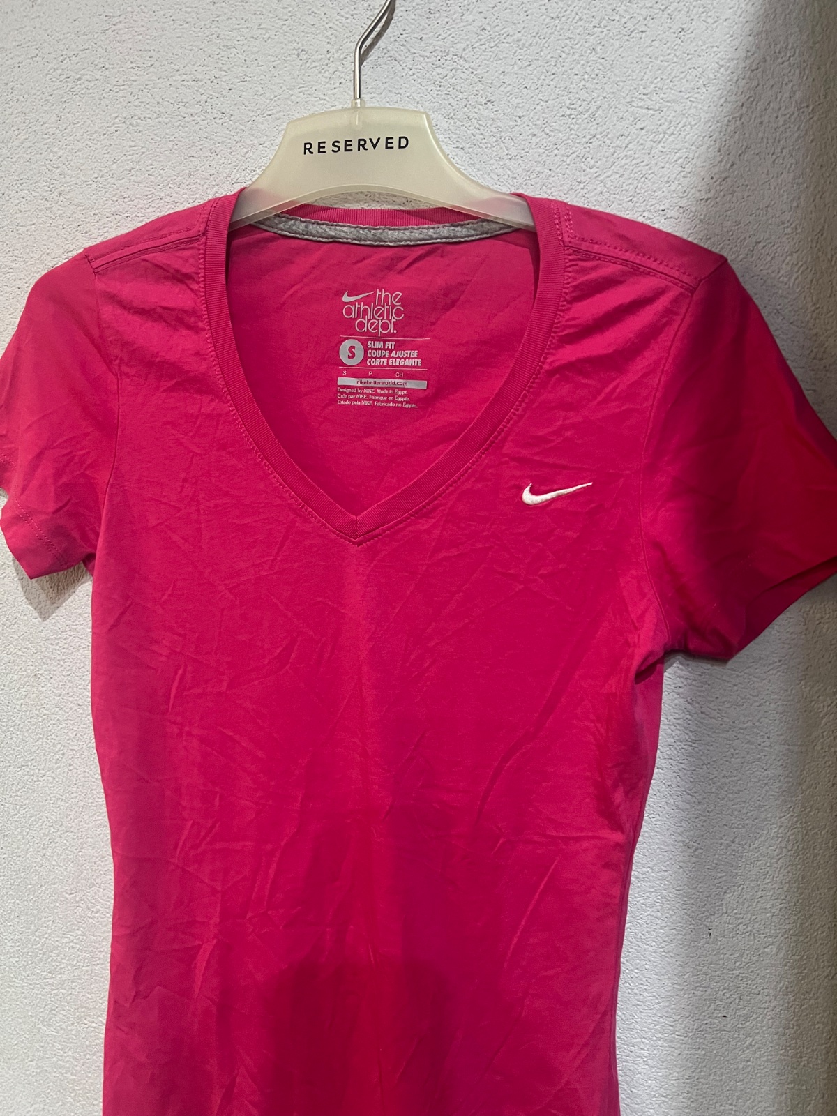 Ponúka na predaj veľmi kvalitné originál tričko značky Nike. Málinko nosené, je ako nové. Farba je cyklaménová a veľkosť S.