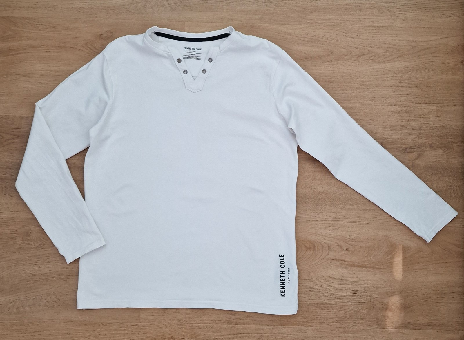 Predám tričko s dlhým rukávom Kenneth Cole, veľ. S. Kúpené v USA, veľmi kvalitné, príjemné na nosenie. 3x oblečené, super stav. Dĺžka 62 cm, rukáv 68 cm,hrudník 100 cm. Cena 4,50 € plus poštovné.
