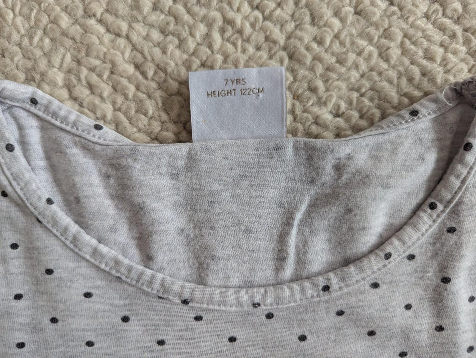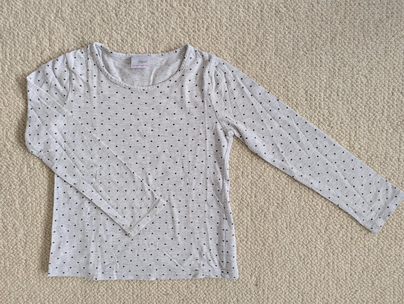 Svetlo šedé bavlnené tričko s dlhým rukávom Next. Píše na 7 rokov, odporúčam 122