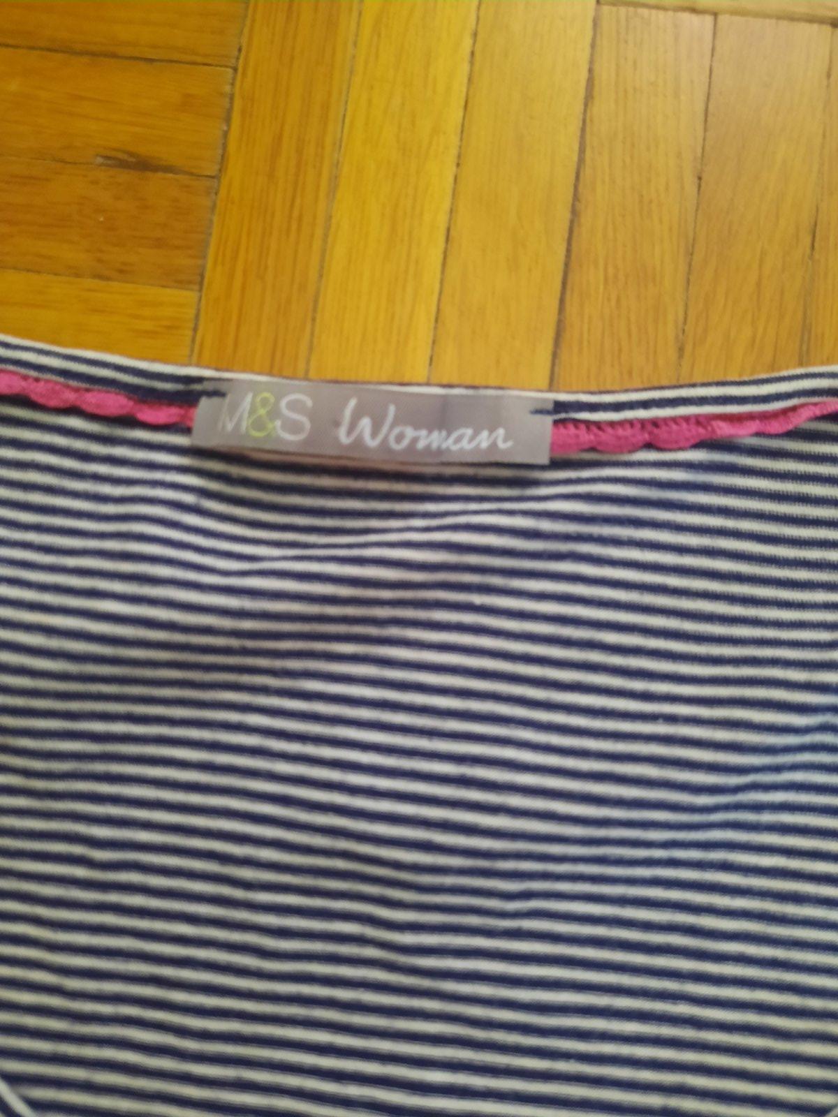 Super pásikavé bavlnené tričko s 3/4 rukávom, kde je malá manžeta. Okolo krku/ dekoltu je olemované. Vhodné aj pre staršie dievčatá.