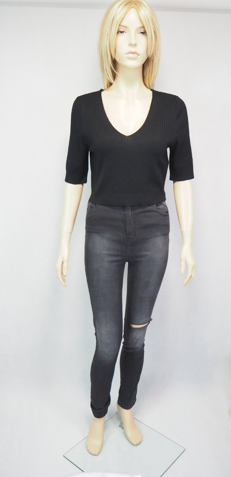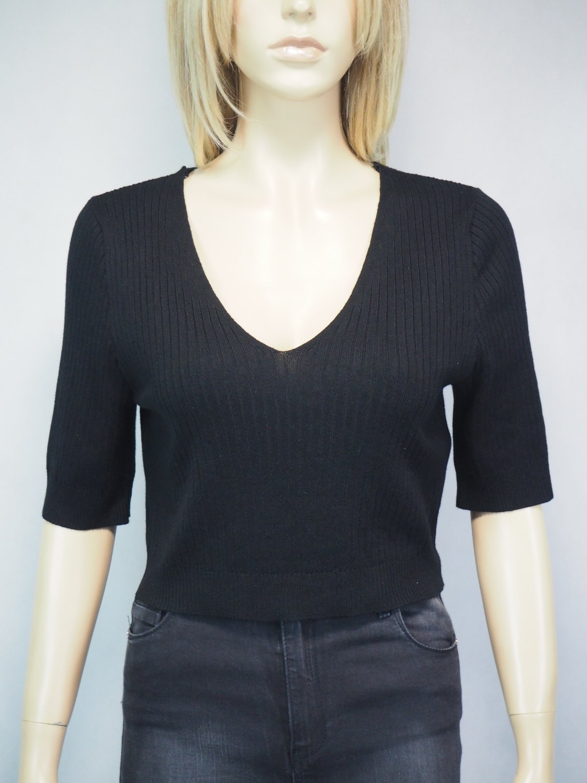 Kvalitný čierny crop top, sveteríkový materiál 74% viskóza, 26% nylon, super stav, ako nový.