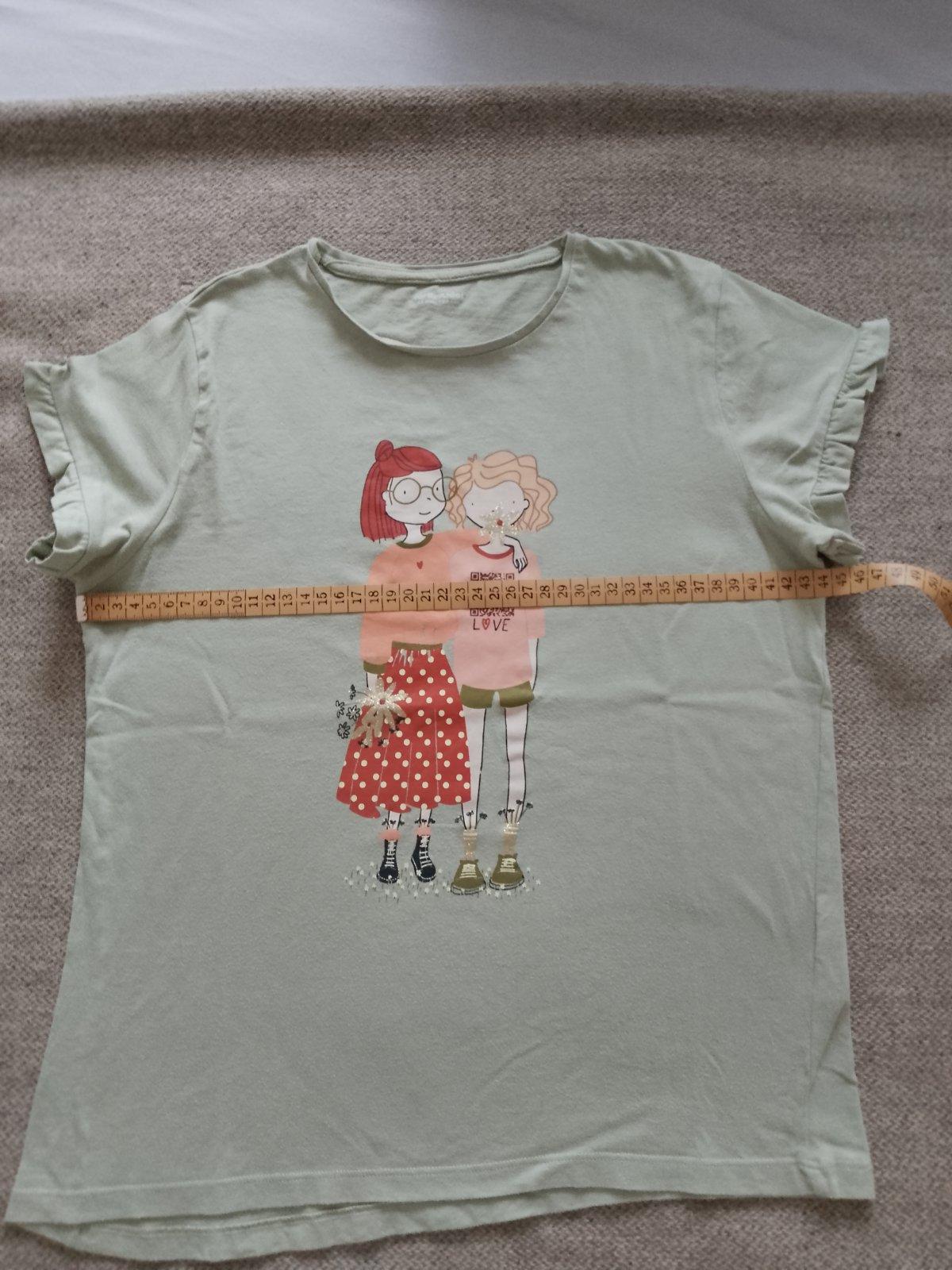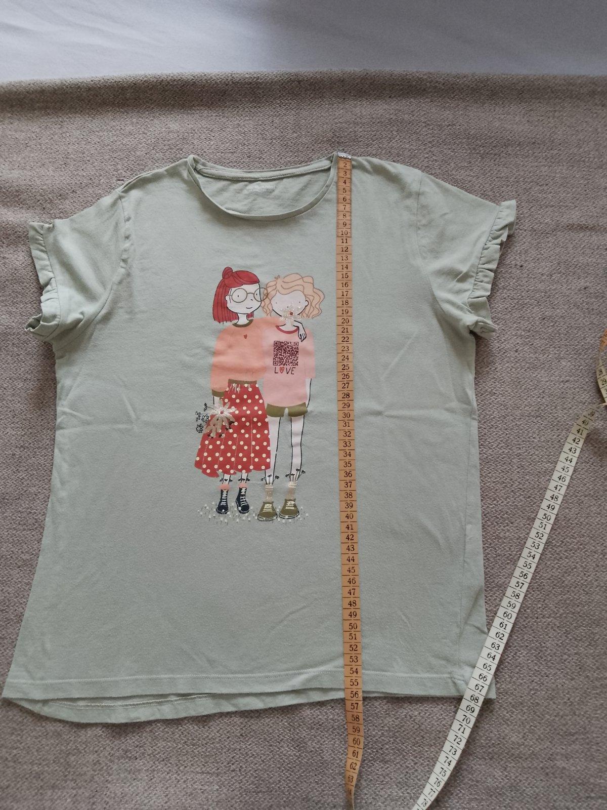 Dievčenské tričko s krátkym rukávom v super stave. Pár krát oblečené. Bez poškodenia, dier a fľakov. Rozmery - viď foto. Materiál je veľmi príjemný na nosenie, mäkká bavlna.