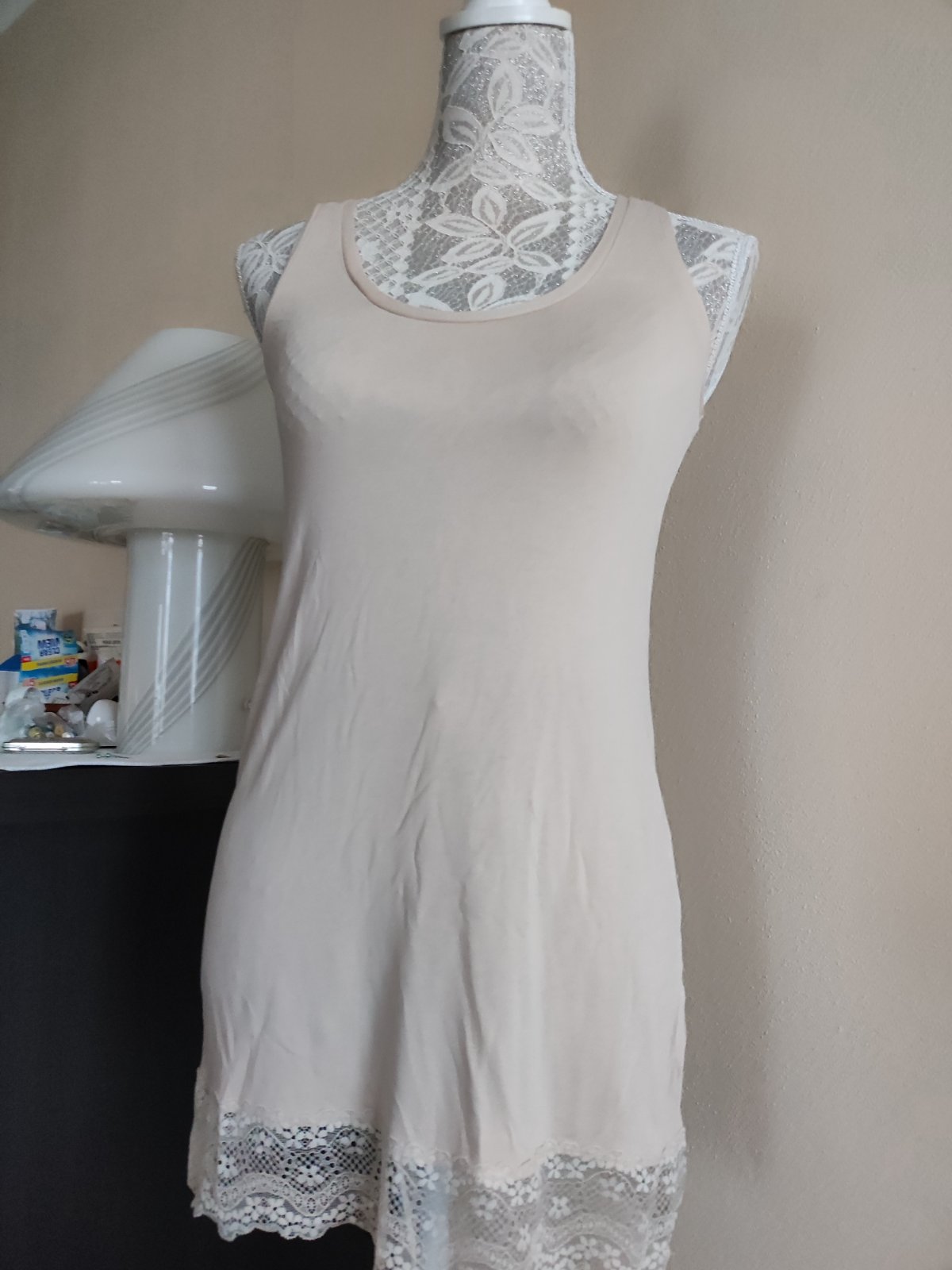 Dámske tielko Tezenis, veľkosť M, je mierne priesvitné. Asi dvakrát oblečené, no spravila sa mu na boku dierka (dá sa zašiť). Inak pekný stav.