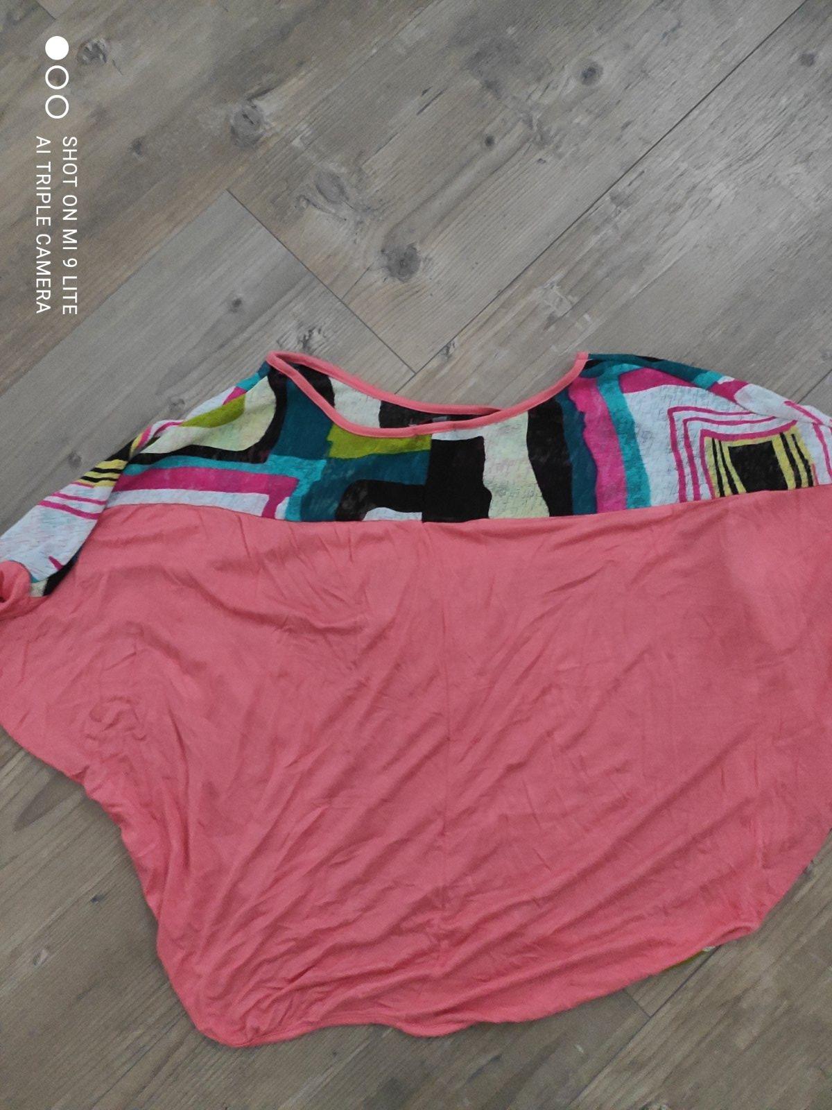 nadherny farebny top volneho oversize strihu. predna cast sialene mnohofarebna z materialu pripominajuceho tensi pulovrik, zadna elasticka bavlnena.