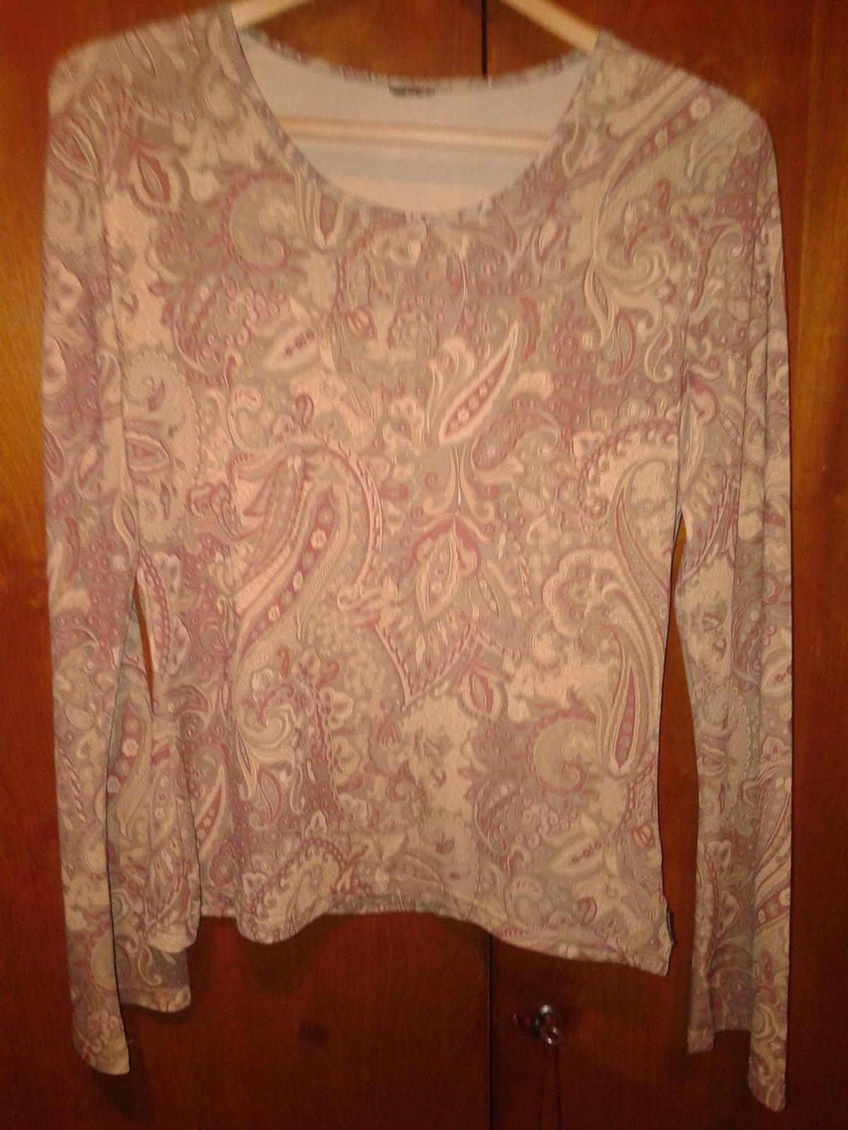 Nosený , zachovalý stav bez dier a fľakov. šírka trička meraná pod pazuchami je 47-48 cm x2.Je to merané v kľude da sa ešte natiahnúť. Material je 92% polyester a 8% elastan, je to napísané na tričku. Material je padavý a nekrčivý.