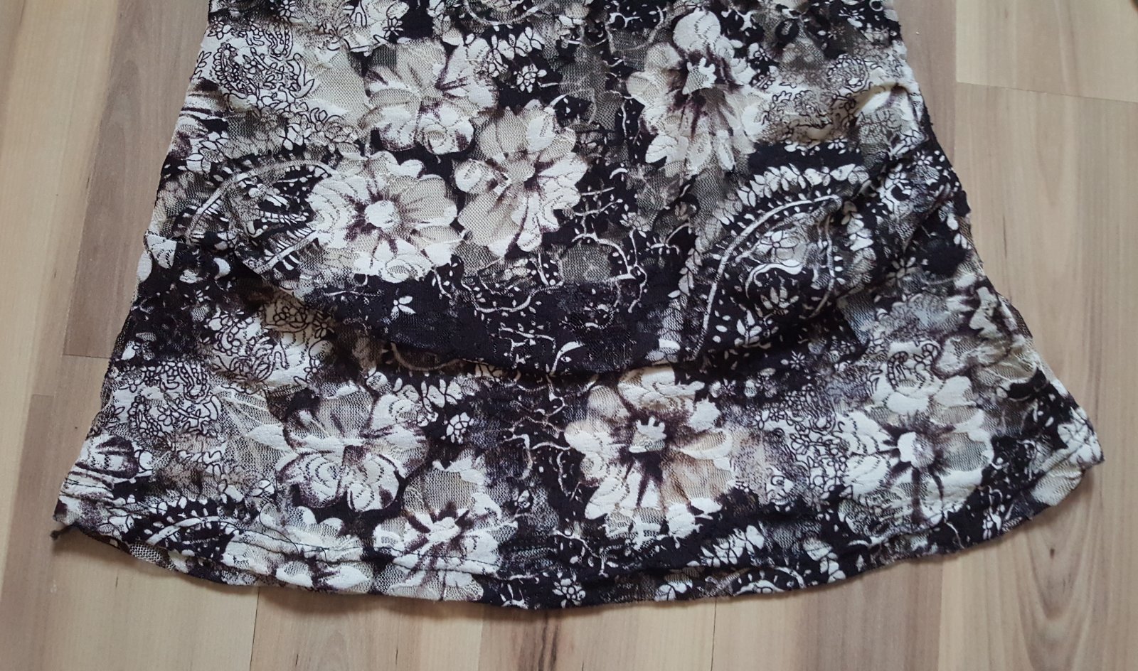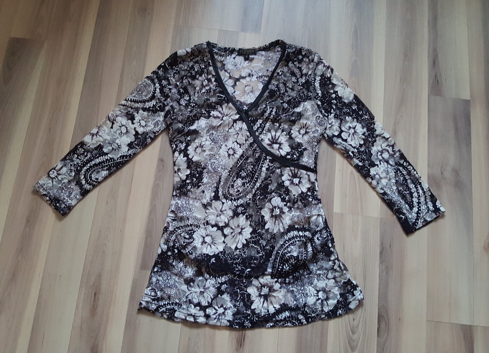 Predám dámske kvetované tričko, veľkosť S. Farba je tmavohnedá s krémovou. Na brušku je mierne nariasené, v prípade potreby zakryje menšie nedokonalosti :) Nosené, ale zachovalé. Cena je 2,20€ + poštovné.