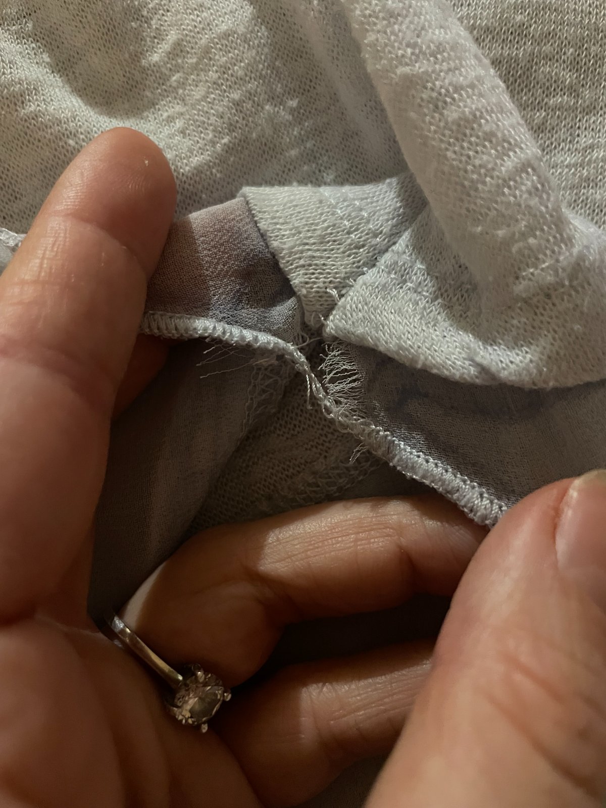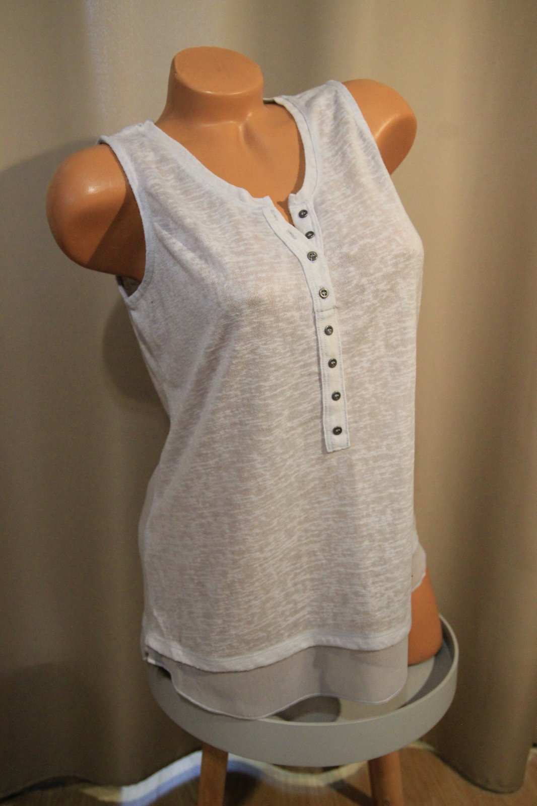 Svetlo šedý top, veľkosť M, na spodku je kúsok rozpáraný. Inak pekný stav.