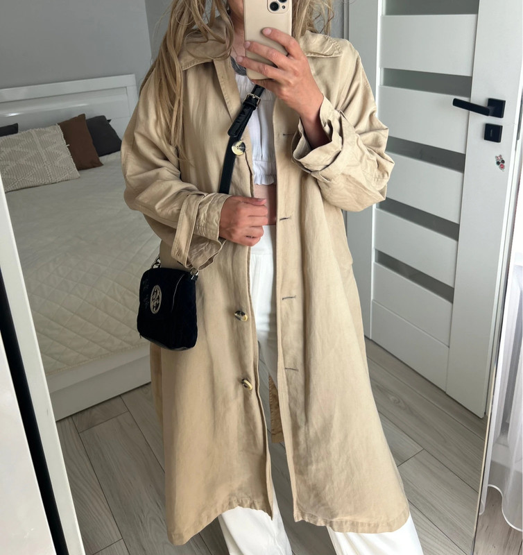 Dlhý oversize trenčkot z ľanu a bavlny