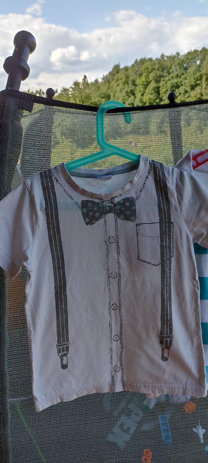 Krásne tričko oblečené maximálne 2 krát k lekárke je to 116 ale kľudne aj 122