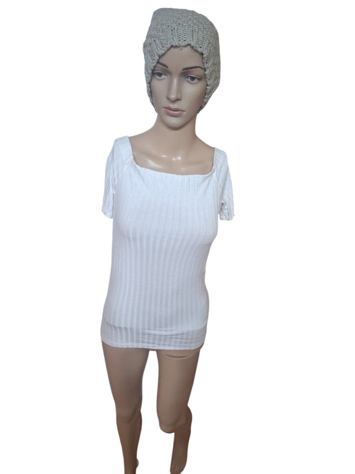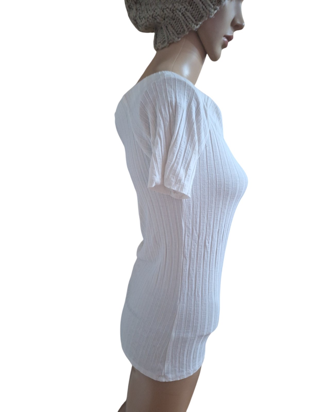 Dámske značkové bavlnené tričko so štruktúrou. Je elastické. Dĺžka je 60cm,obvod hrudníka je 76cm a obvod pása je 74cm. kód 1137