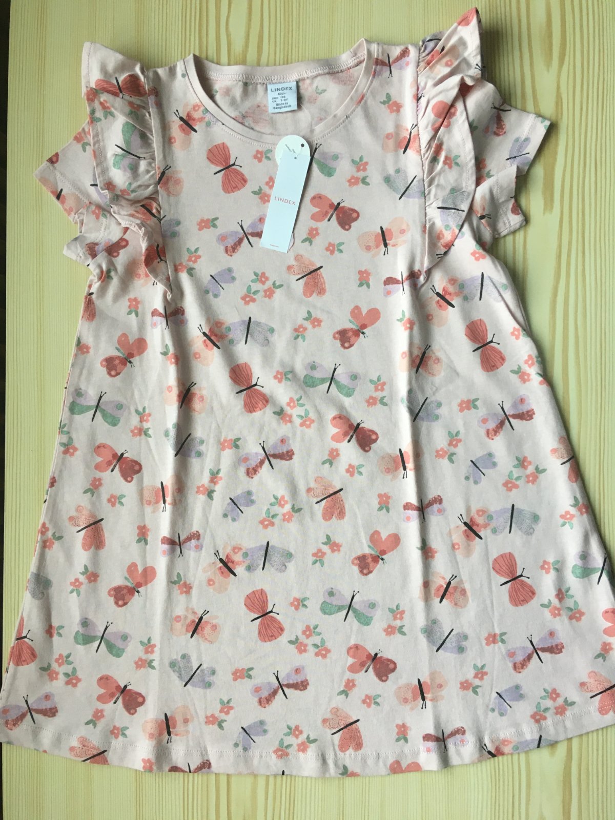Nová, nikdy nenosená, ešte s visačkou. Svetloružová tunika s motívom motýlikov značky Lindex vo veľkosti 128.