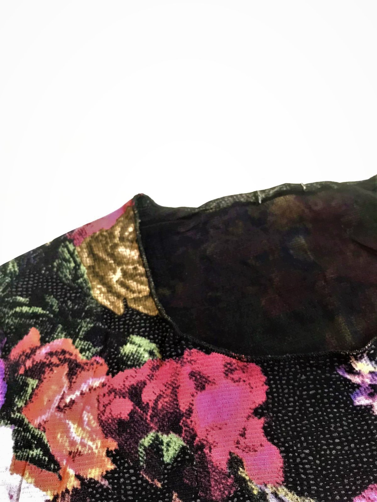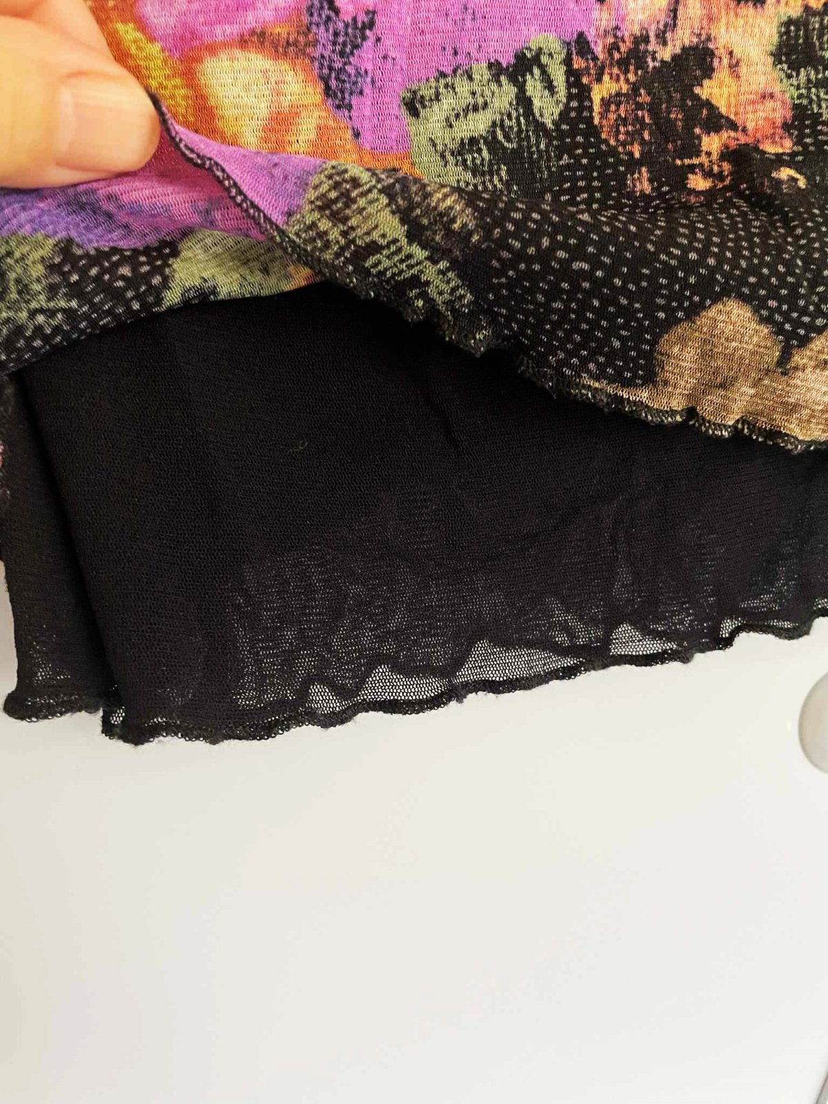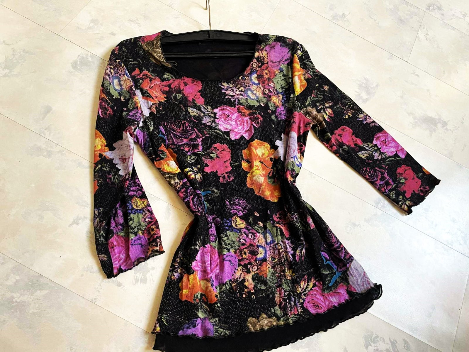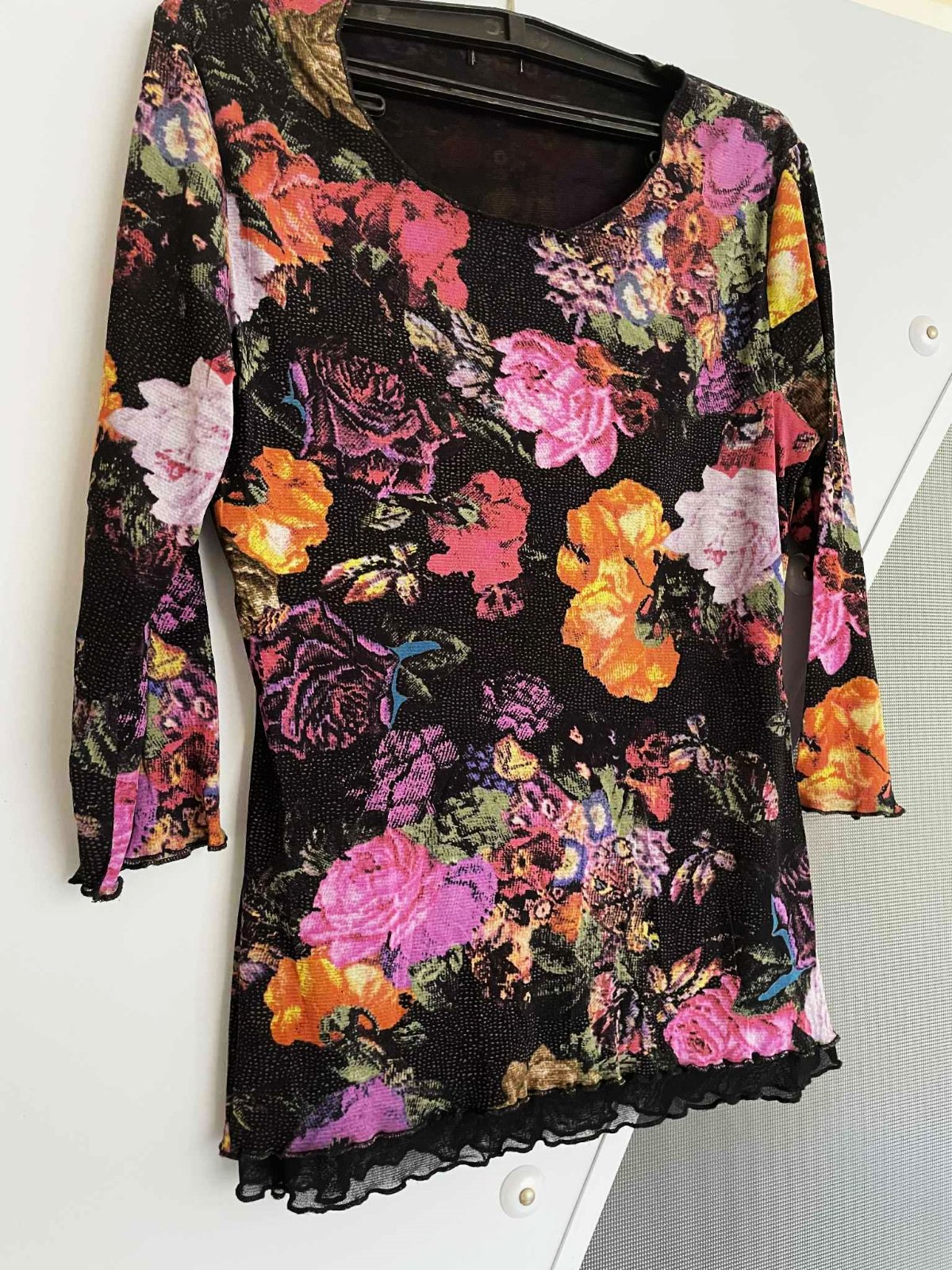 krásne tričko, vhodné aj na spoločenské udalosti,1 x oblečené,krásne detaily,rukáv 3/4,jemný kvalitný pružný materiál,podšité jemnou elastickou čiernou sieťkou,ktorá dole pretŕča - vyzerá ako vrstvené obruba okolo krku a rukávov akoby neukončená,top kúsok do šatníka