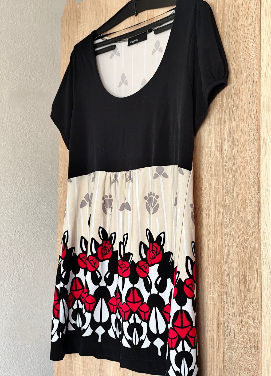 Dámske letné tričko. Veľkosť je neudaná ale rozmerovo sedí niekde na XL - XXL .Materiál je 95% polyester a 5% elastan. Stavom je v skvelom stave bez poškodenia.