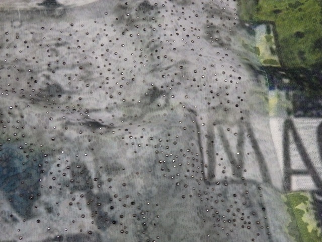Luxusný letný top, zdobený čipkou a potlačou, tranparentný, materiál 100%polyester, super stav.