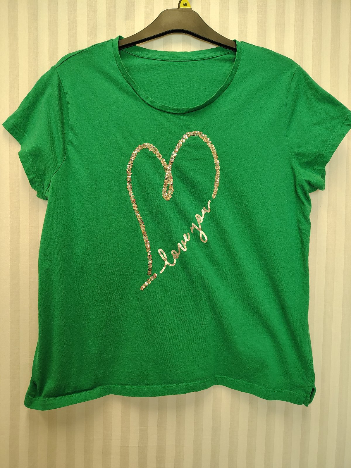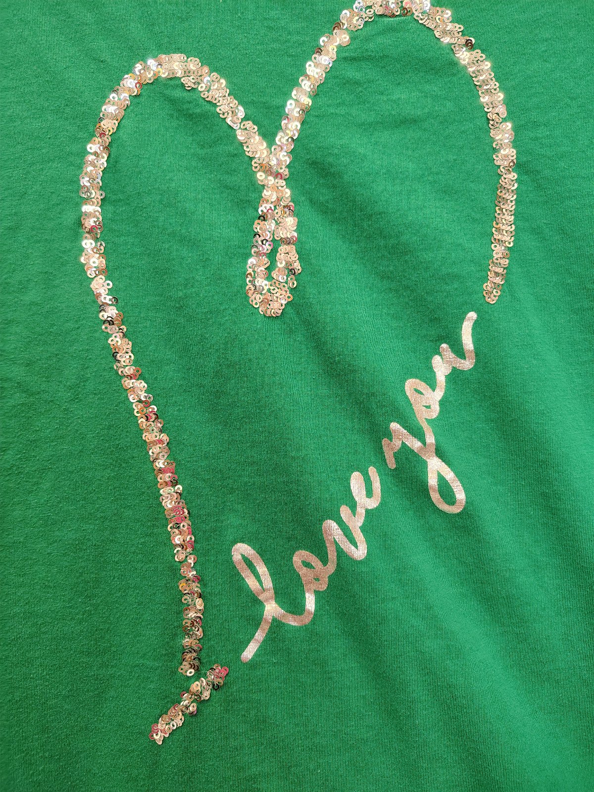 dámsky bavlnený zelený top so strieborným motívom srdce z flitrou a nápisom love you,