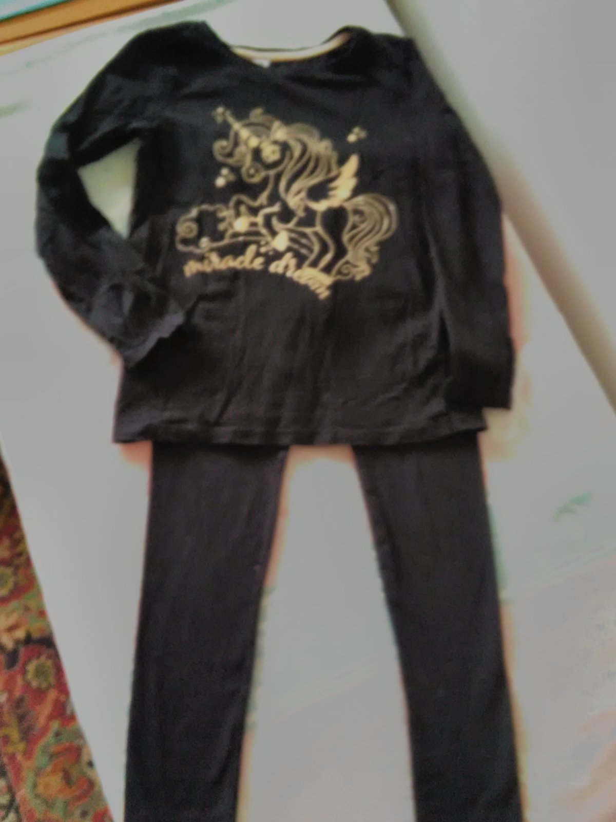 Čierne tričko s krásnym trblietavým obrázkom. K tomu pridávam zdarma čierne legíny značky crafted.