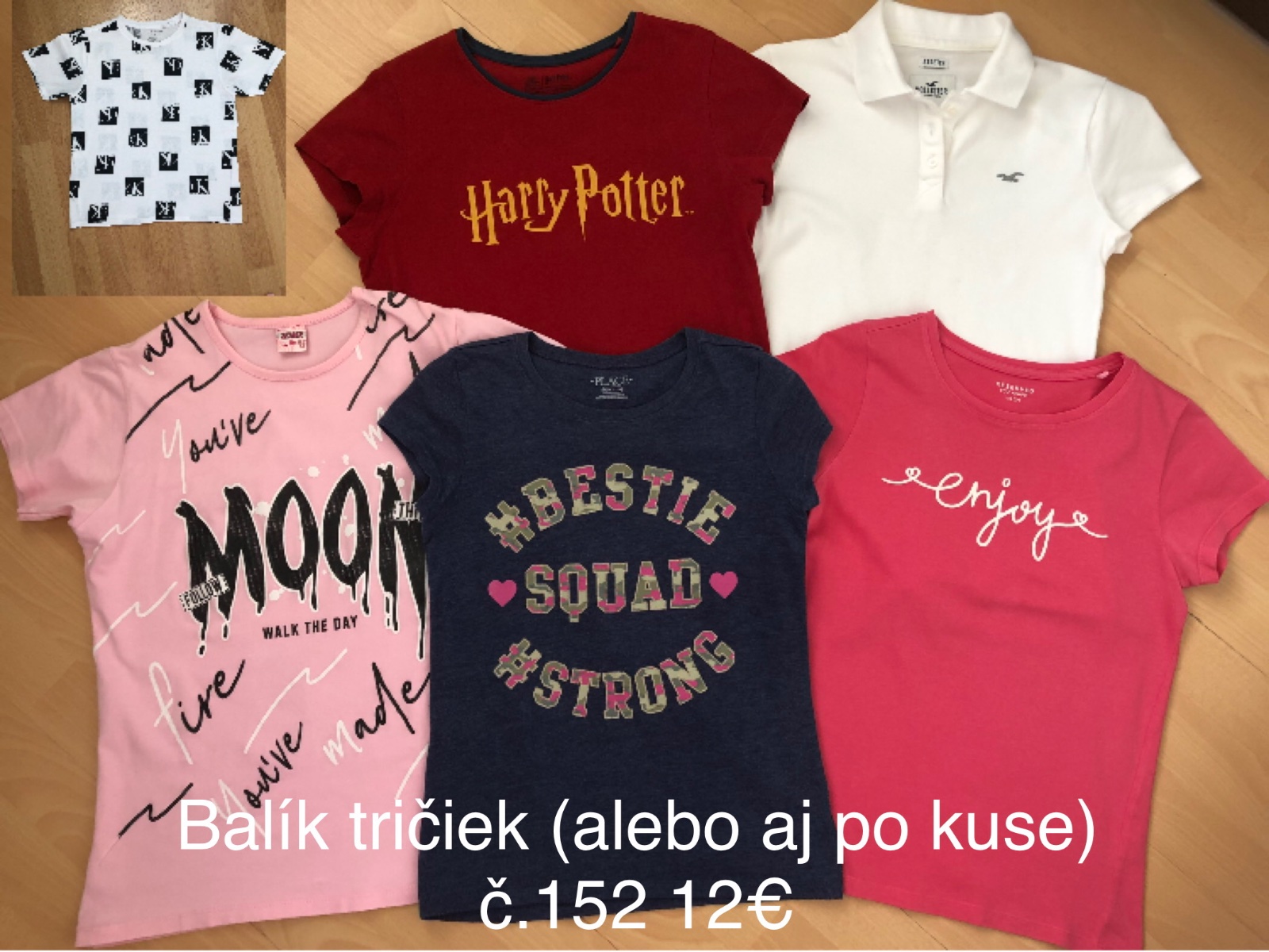 Predám balík tričiek v peknom zachovalom stave vo veľkosti č.152. Cena 12€.