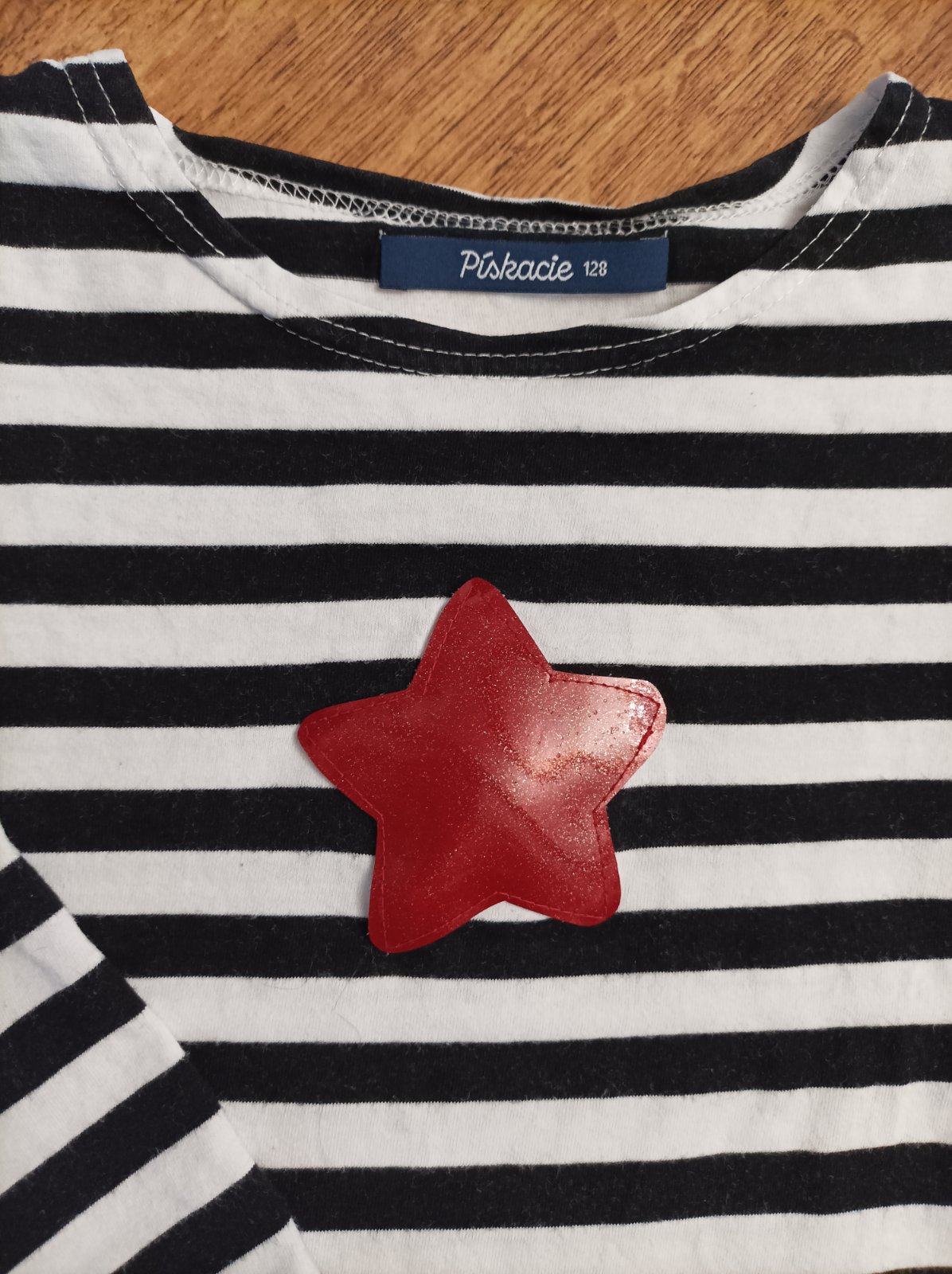 Perfektné pískacie tričko. Veľkosť 128 ale ponosíte dlhsie. Všetko píska..