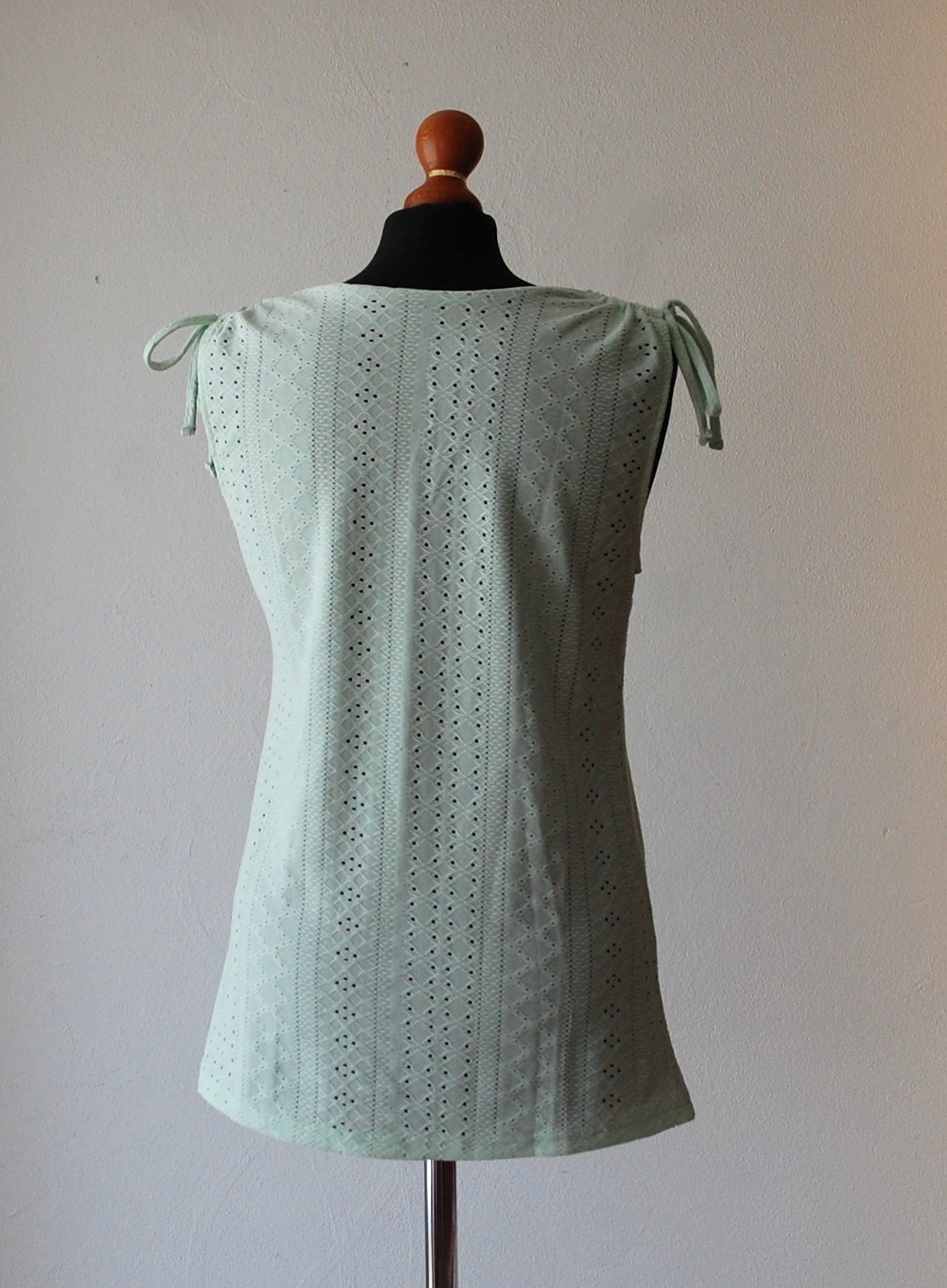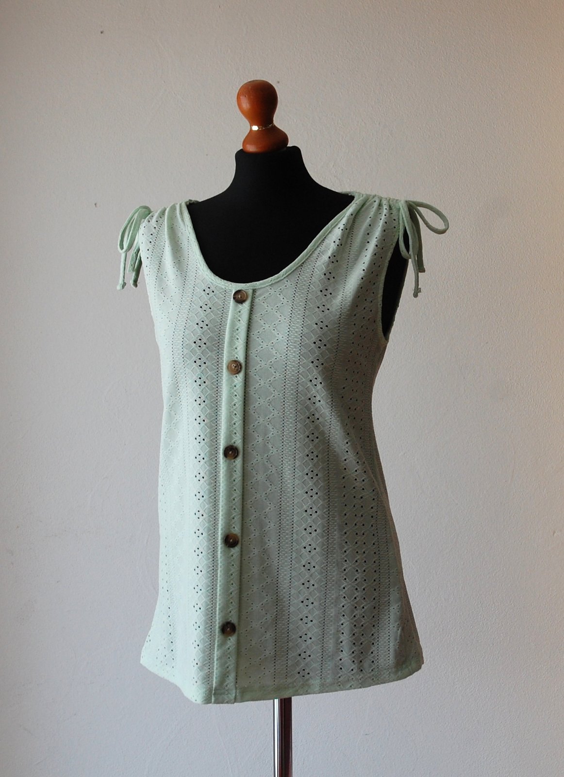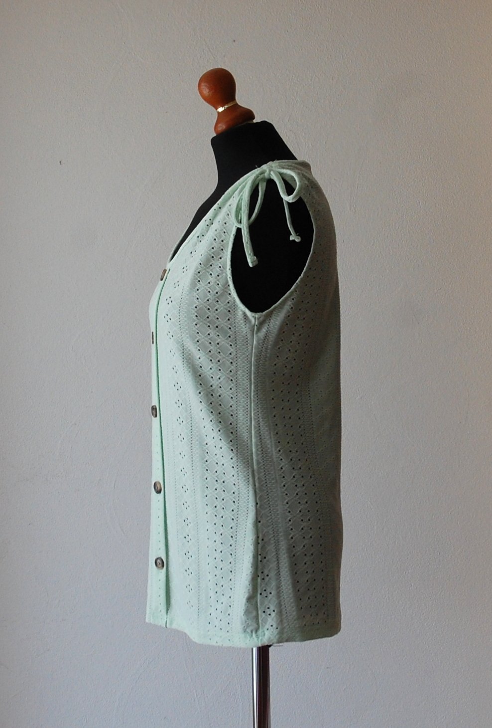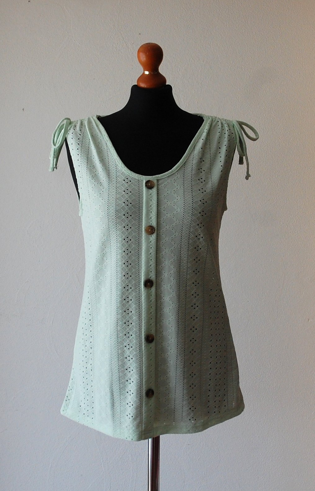 Mentolové tielko s dierovaným vzorom a gombíkmi