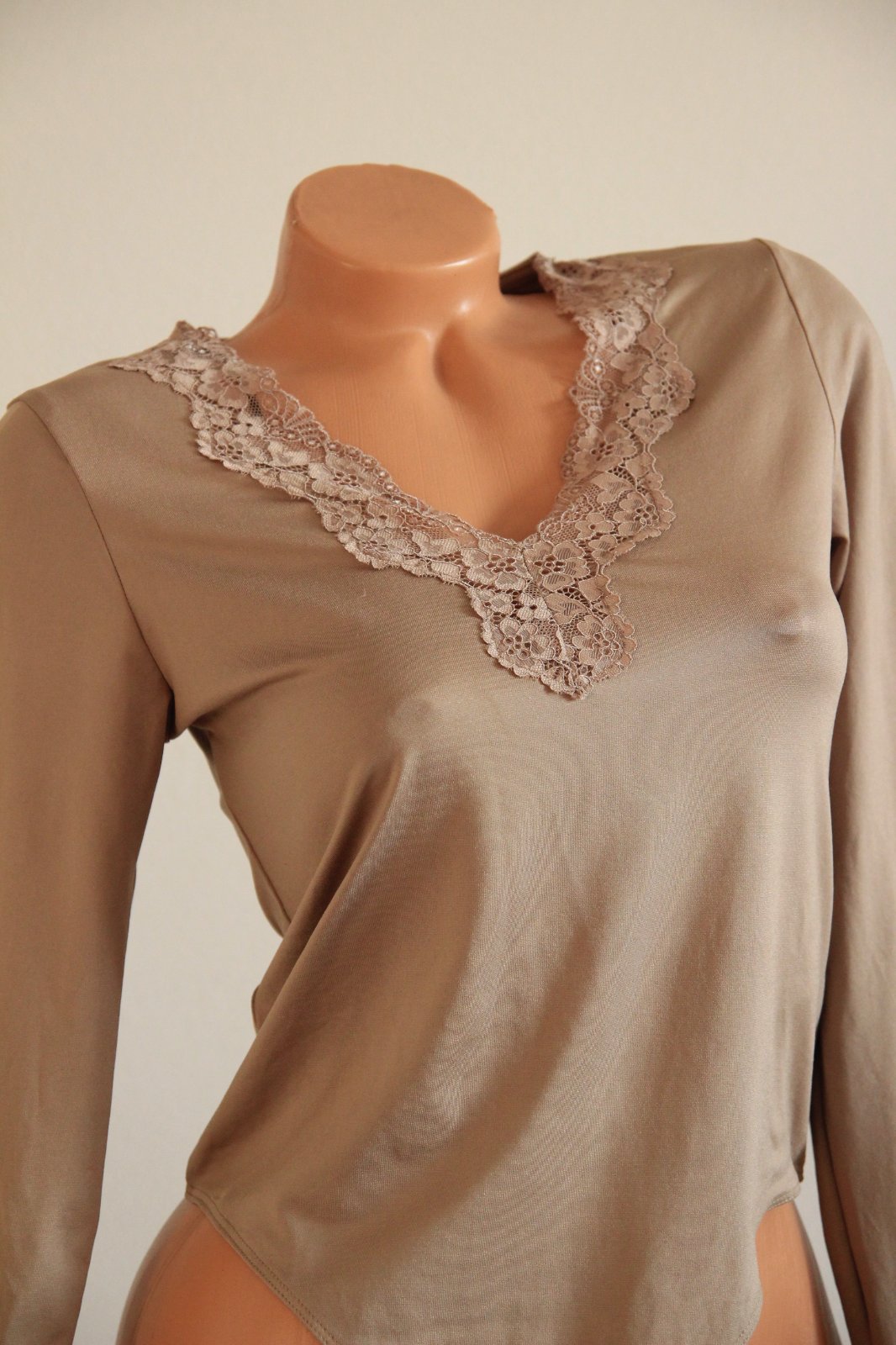 Hnedý elastický body top s čipkou, veľkosť M, značka H&M, top stav.