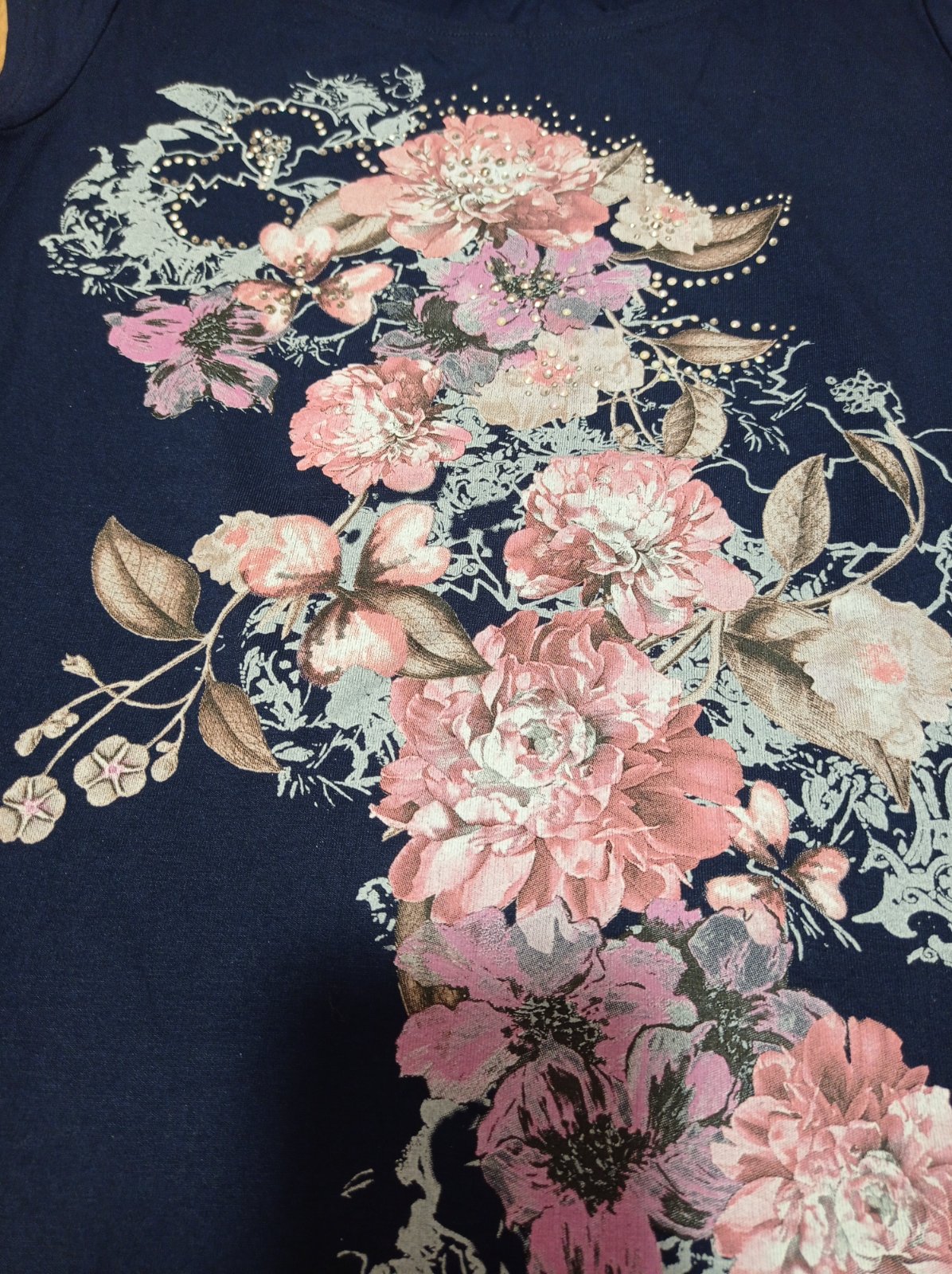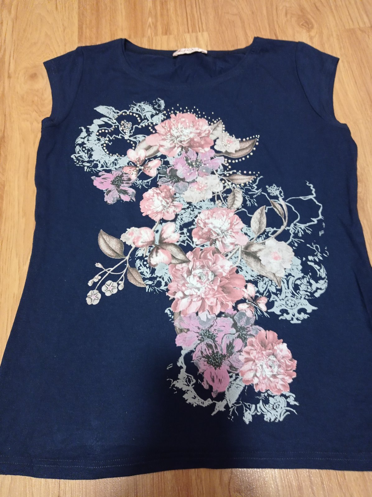Tricko s flitrami, 1x prane. Bez poskodeni. Dlzka:55 cm, sirka:39 cm. Elasticke.