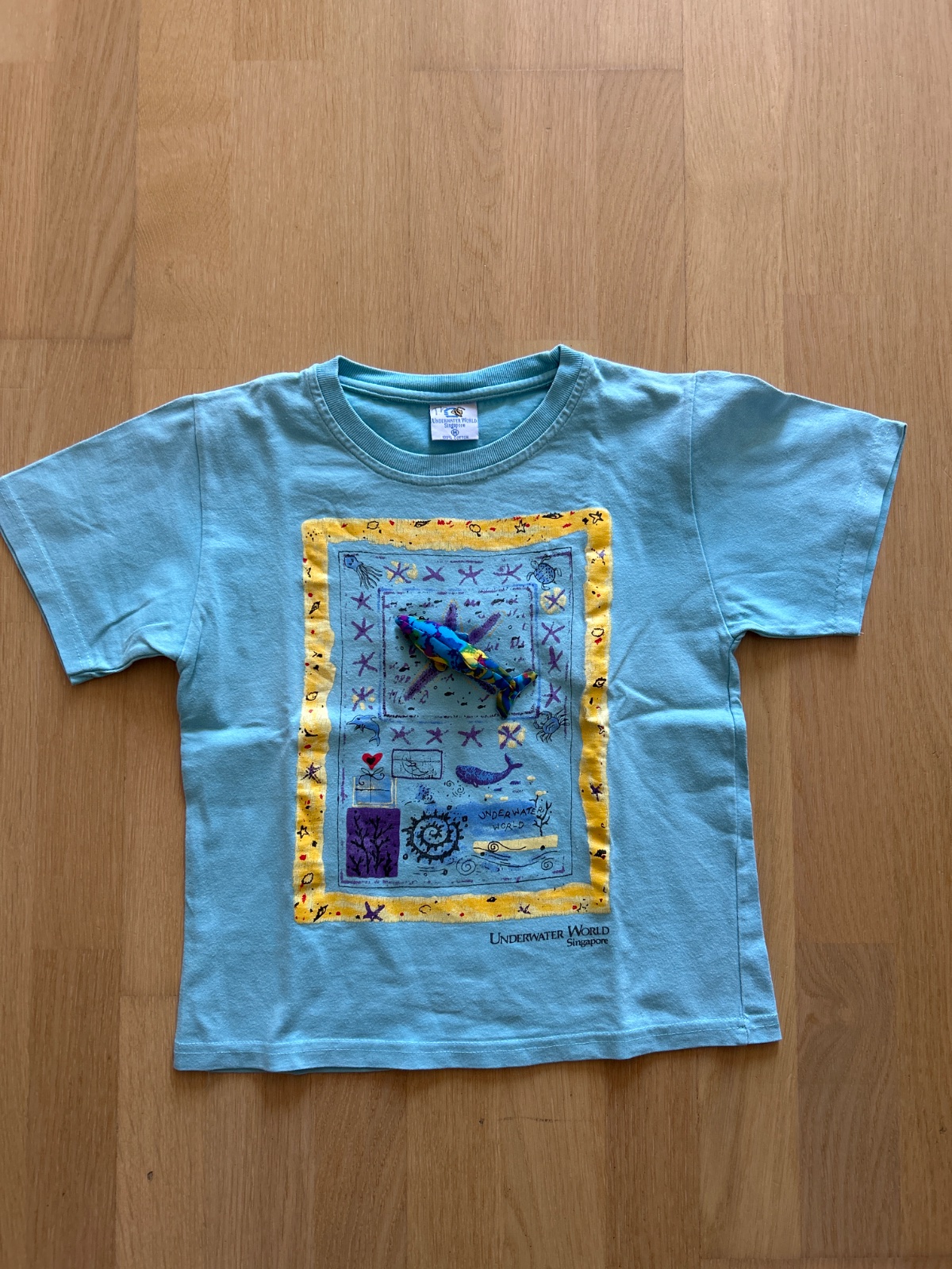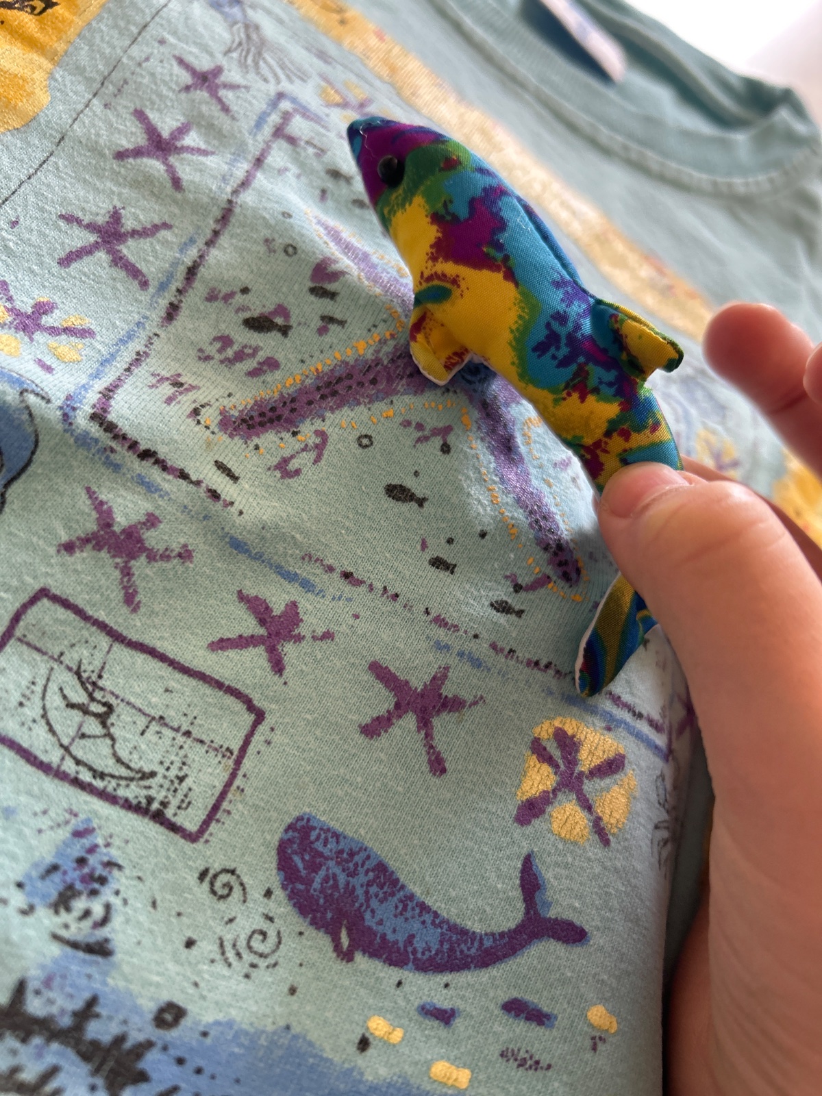 Dievčenské bavlnené tričko s 3-D rybou bez poškodení.