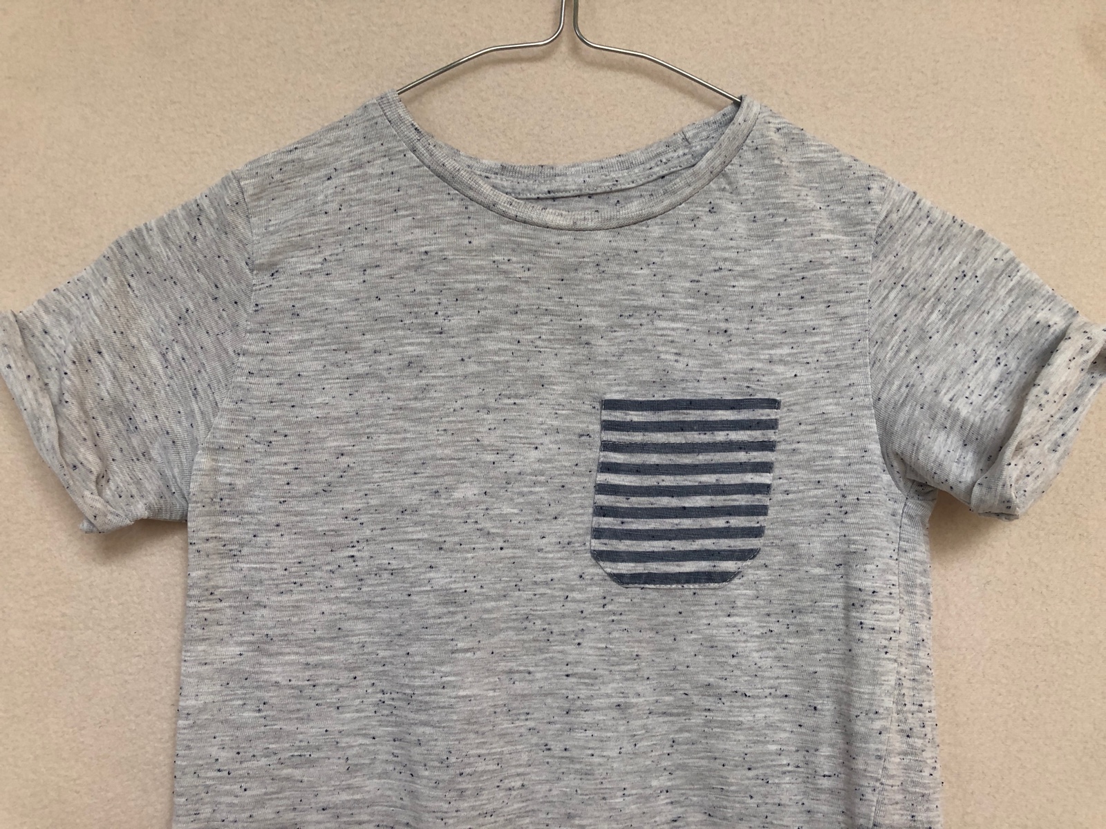 Sivé tričko s pásikavým vreckom