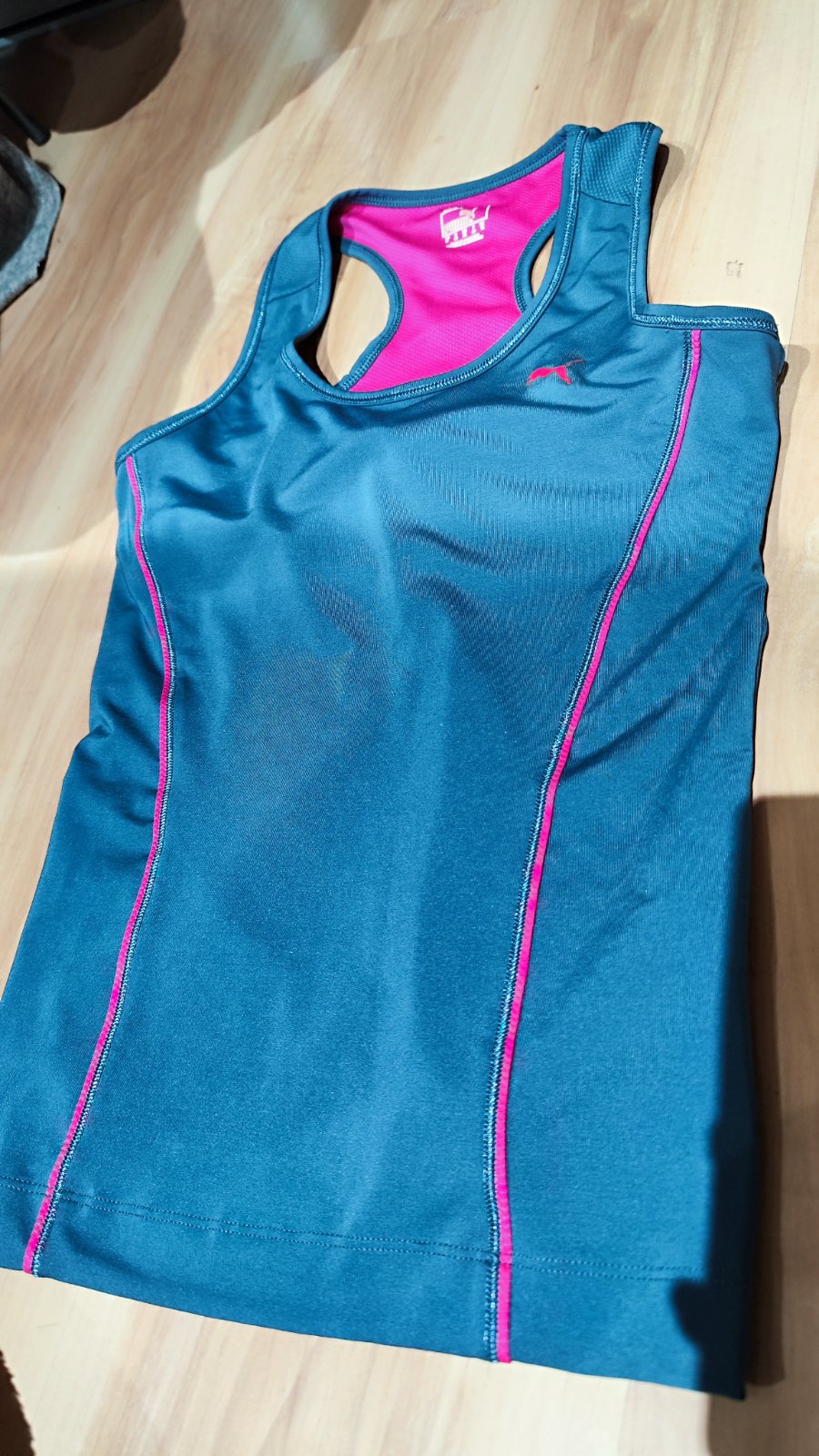 Športové šedé tielko značky Puma (s funkciou Cell Dry). Zvnútra má všitu podprsenku (viď poslednu foto). Fotky som fotila s bleskom aj bez.