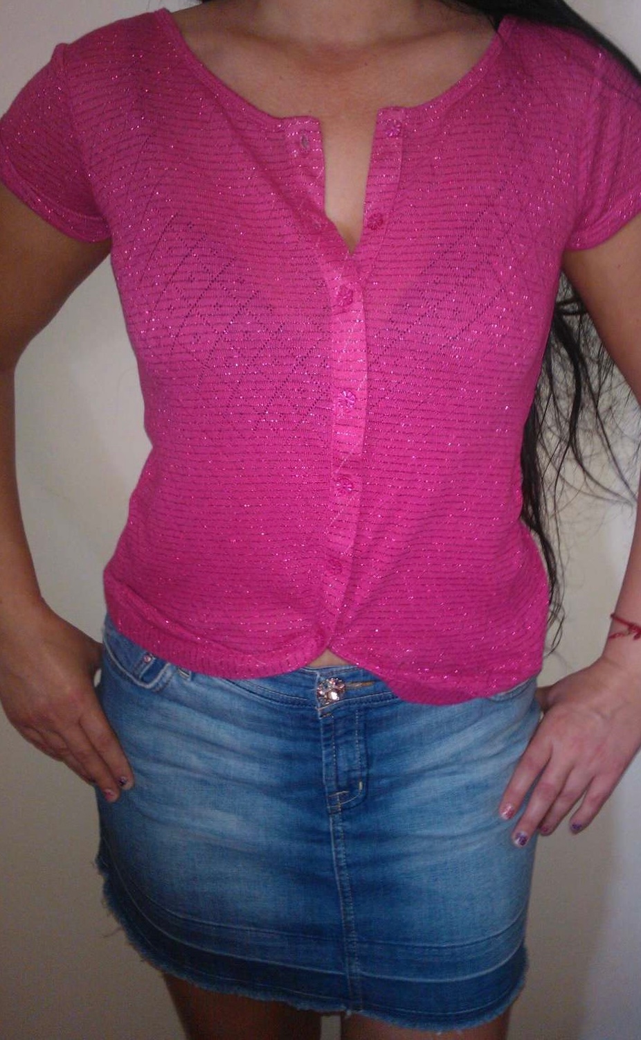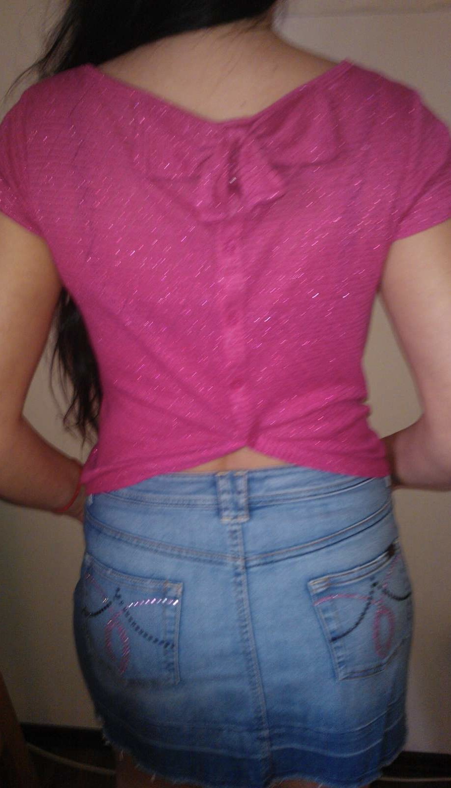 Tričko v krásnej ružovej farbe s lesklým odleskami a efektnou mašľou má chrbátiku