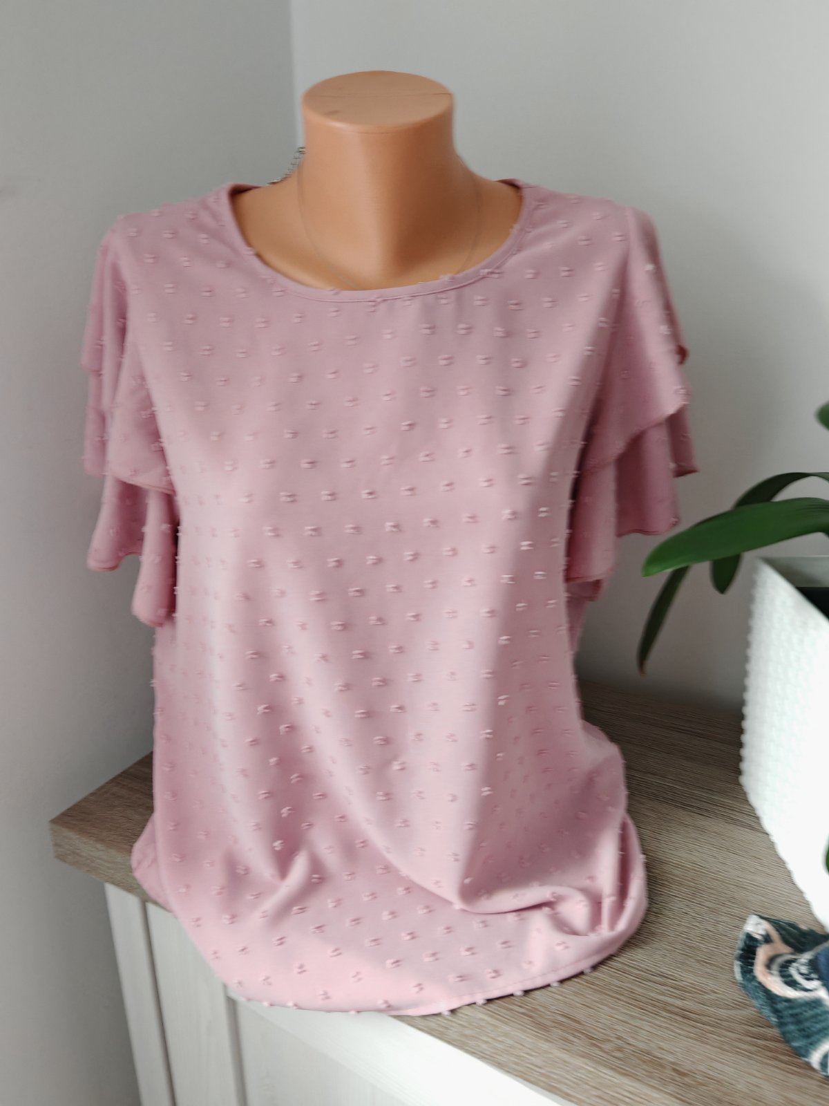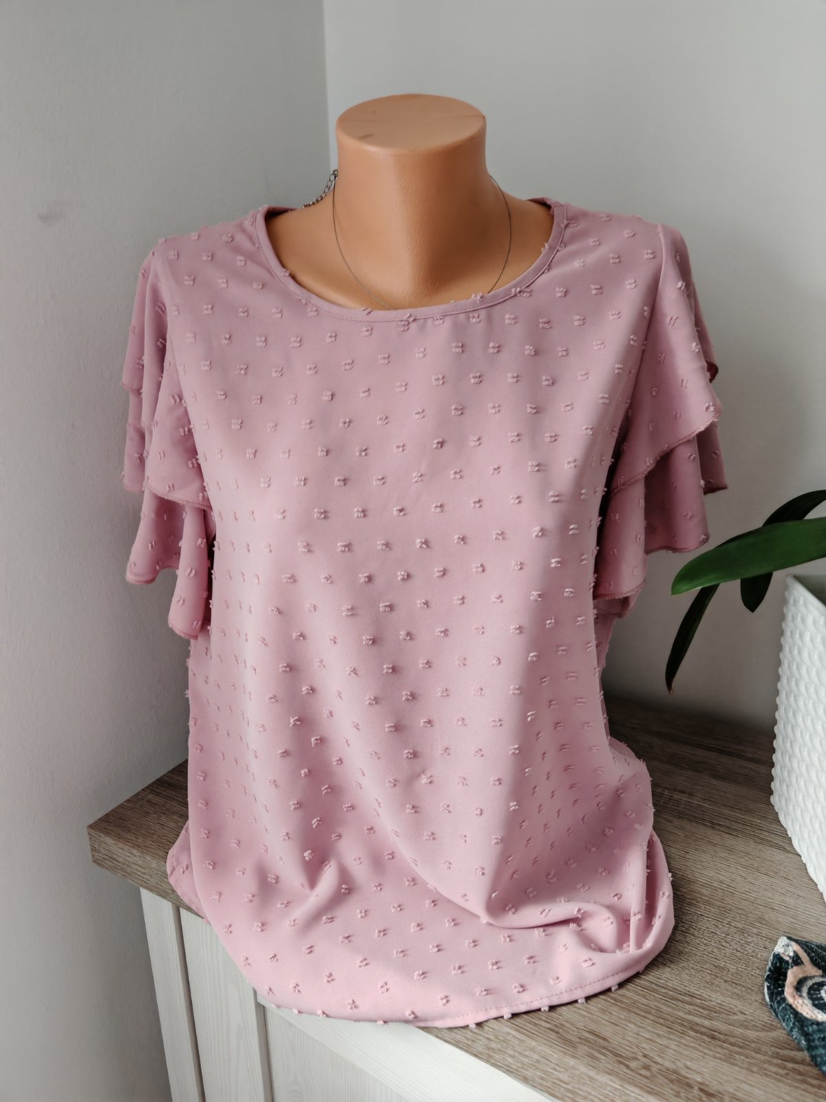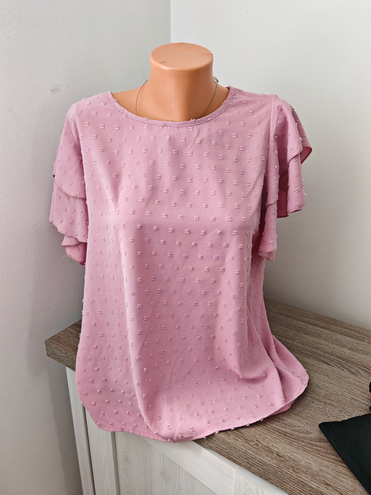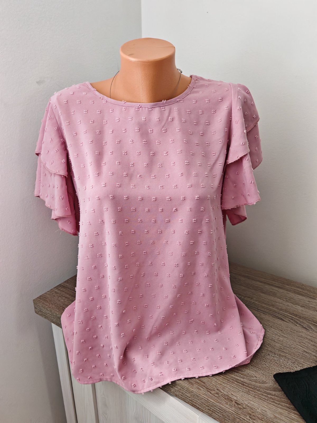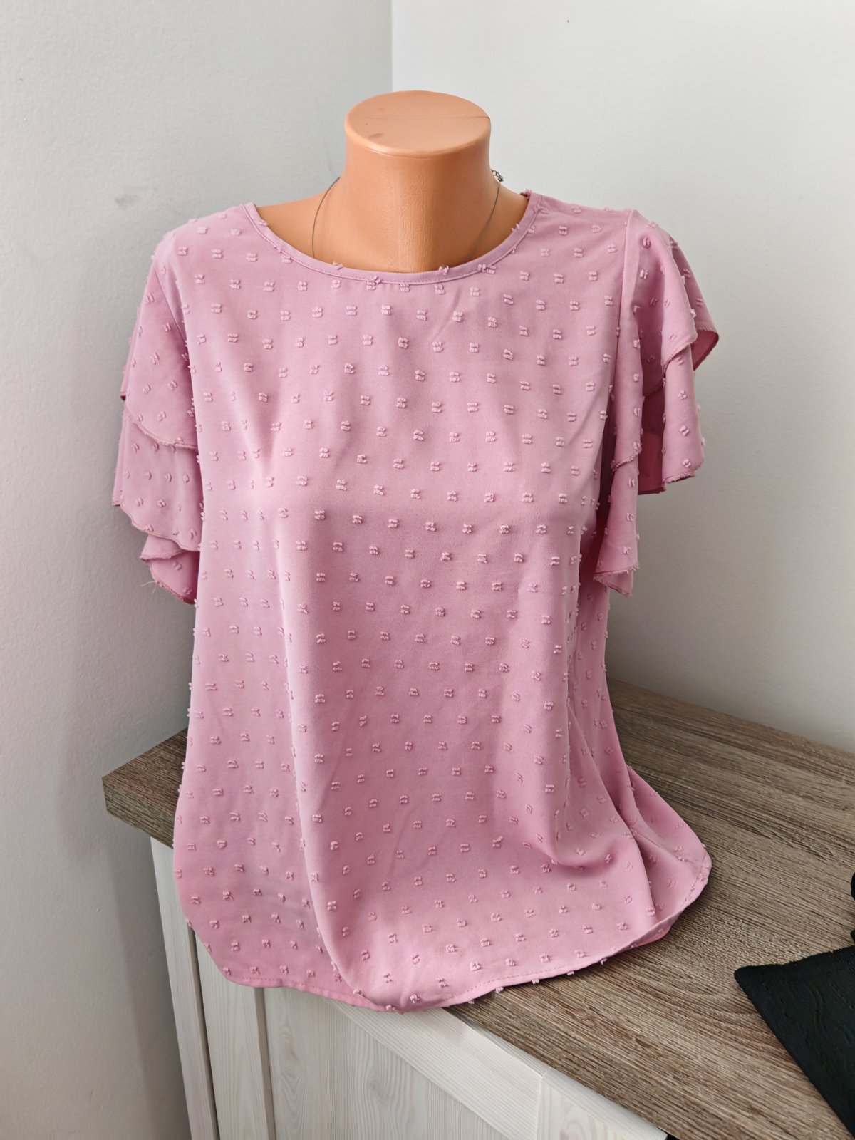 Krásna pudrovo ružová blúzka, sadne na M,L , žehliť treba Max na dvojke,lebo kúsoček pod pazuchou sa mi odtlačok, je krásna top a pri nosení to vôbec nevidieť..Neolutujete, krasne sedí.