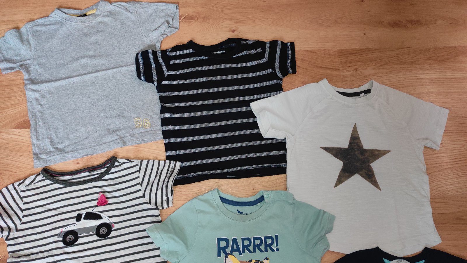 Ponúkam na predaj pekne bavlnené tričká pre chlapca. Nosené ale stále pekne bez nejakých poškodení. Spodné tmavo modré h&m (krásne, nevyblednute) a bledo modré asi f&f tiež krásne minimálne nosené. Ostatné sú next, nosenejsie, ale nemajú poškodenia. Cena 9 eur.