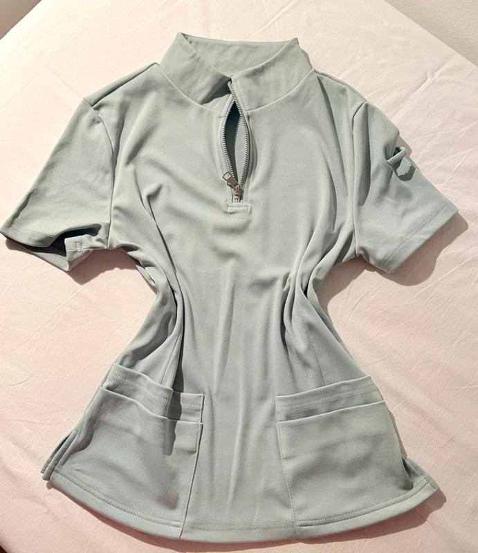 Zdravotnícke tričko v jemnom, mätovom odtieni.