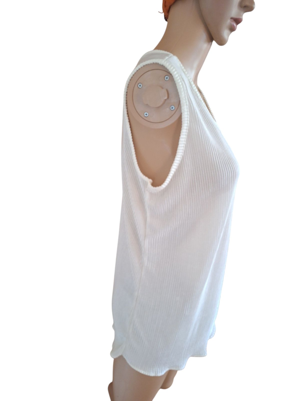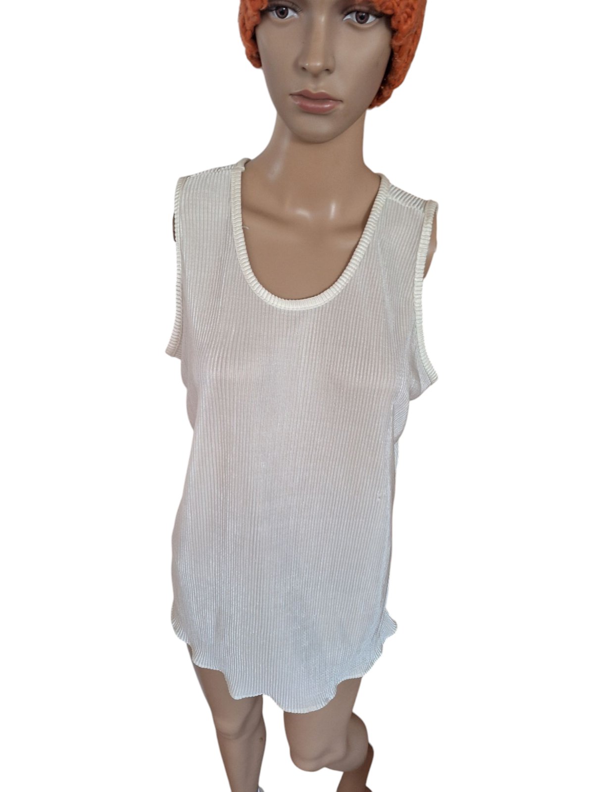 Dámske polosaténové tričko so štruktúrou. Je mierne elastické. Dĺžka je 70cm,obvod hrudníka je 102cm a obvod pása je 96cm. kód 1567