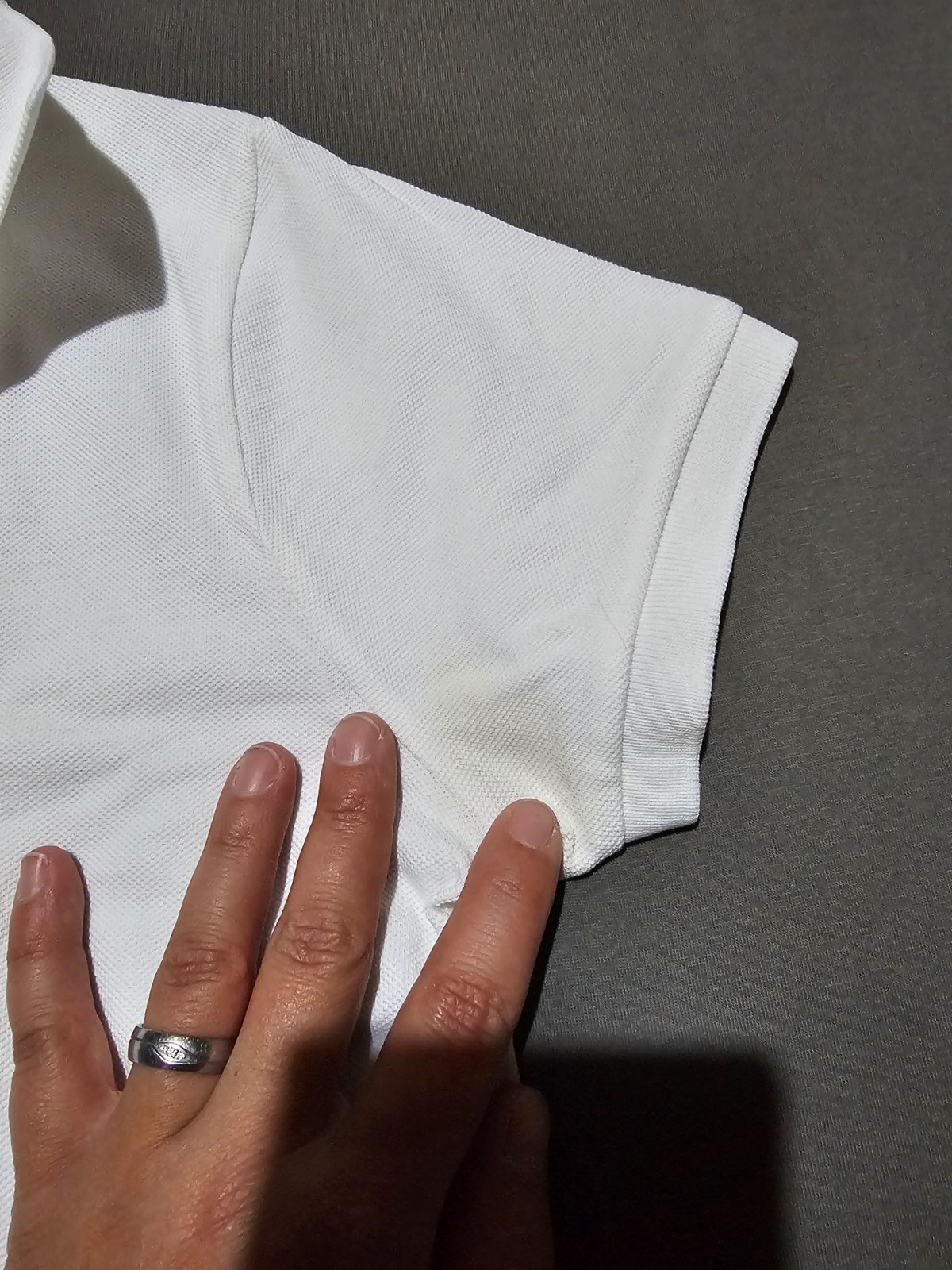 Pekne,nepoškodené. Pod pazuchou jemný žltý fliačky. Myslím, že vanish by to spravil.
